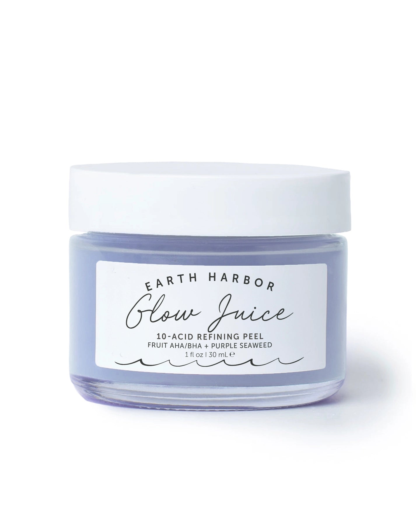 A purple paradise, this powerful fast-acting AHA/BHA gel mask naturally resurfaces + cools + firms skin with Red Seaweed, Fruit Enzymes, White Willow Bark and Aloe Leaf Juice to reveal greater clarity, look of improved skin texture and tone, and a more youthful glow — all without irritating your skin. GLOW JUICE Refining Enzyme Mask doubles as a leave-on spot treatment. She's your gal for quickly calming, soothing, and rebalancing skin.