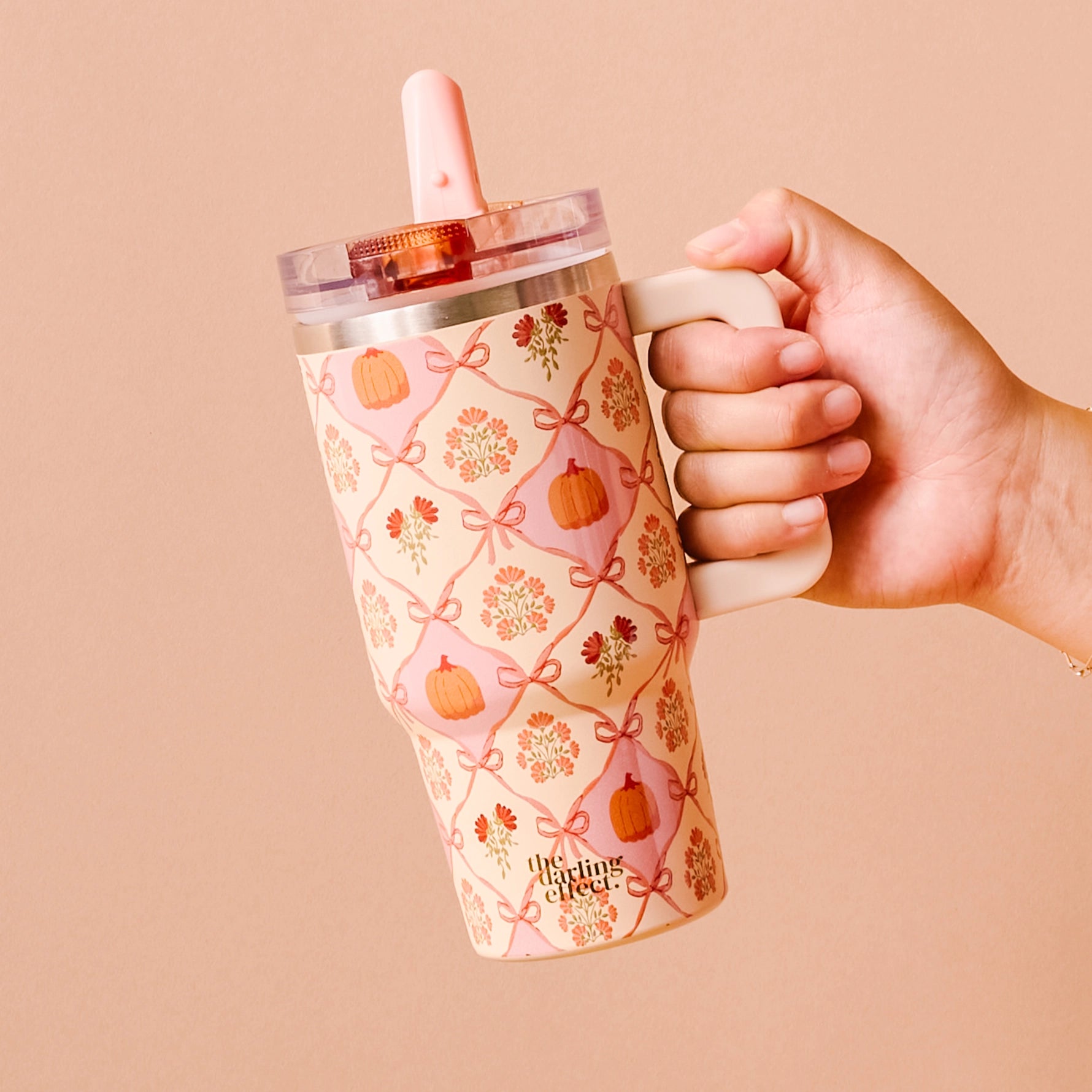 Patchwork Pumpkins 20 oz Lifestyle Flip Straw Tumbler by the Darling Effect