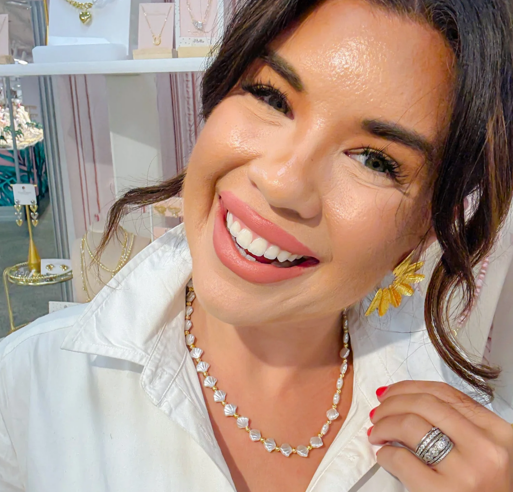 Delicate, dainty, dreamy. This necklace is adorned with lustrous shell-inspired beads and golden touches that shimmer with every move. It adds a perfect hint of coastal elegance and feminine charm.