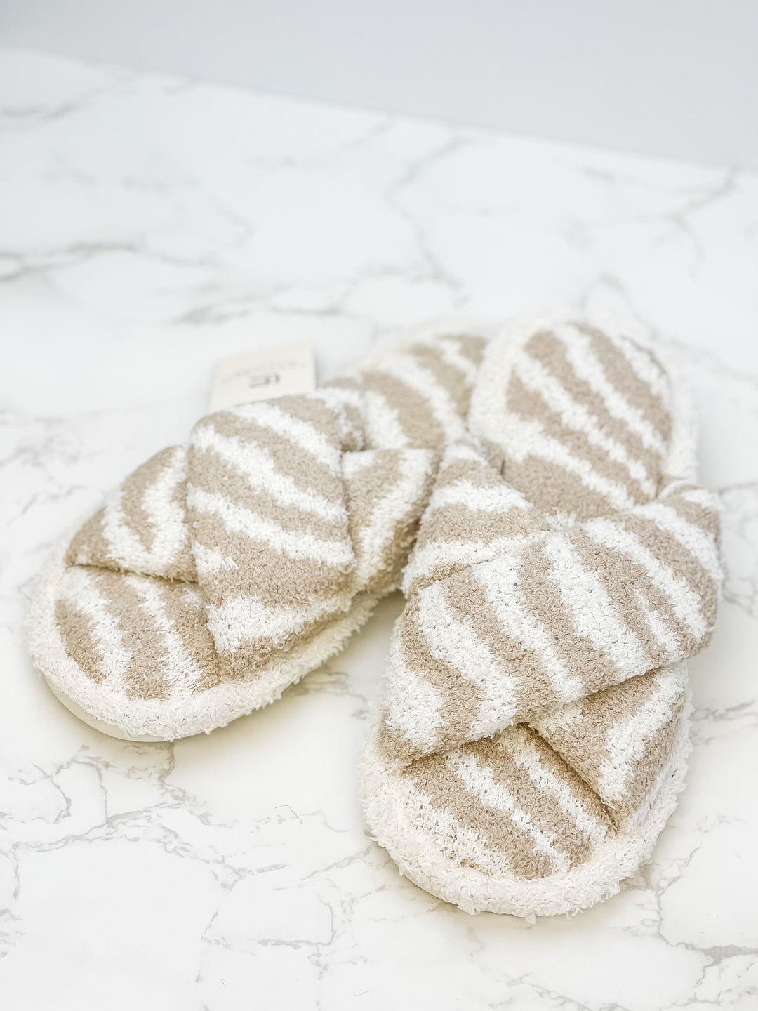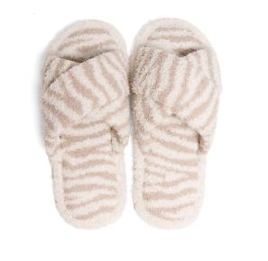 Zebra Criss Cross Fuzzy Slippers - Beige