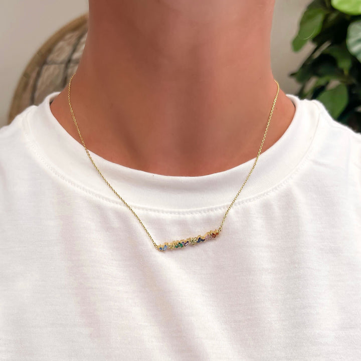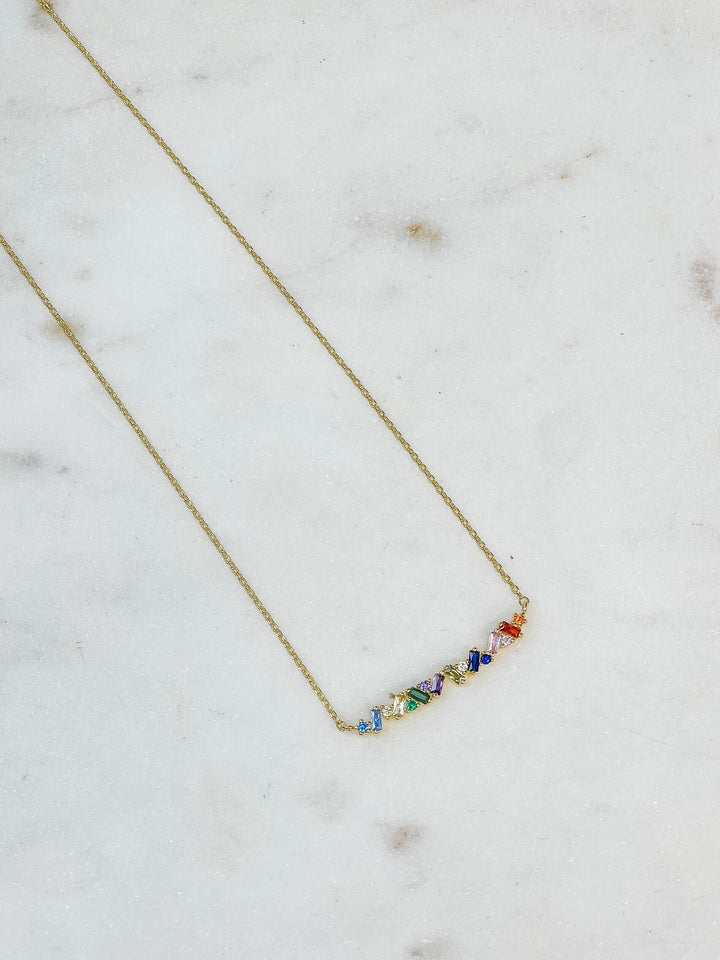 Cubic Zirconia Rainbow Baguette Bar Pendant Necklace
