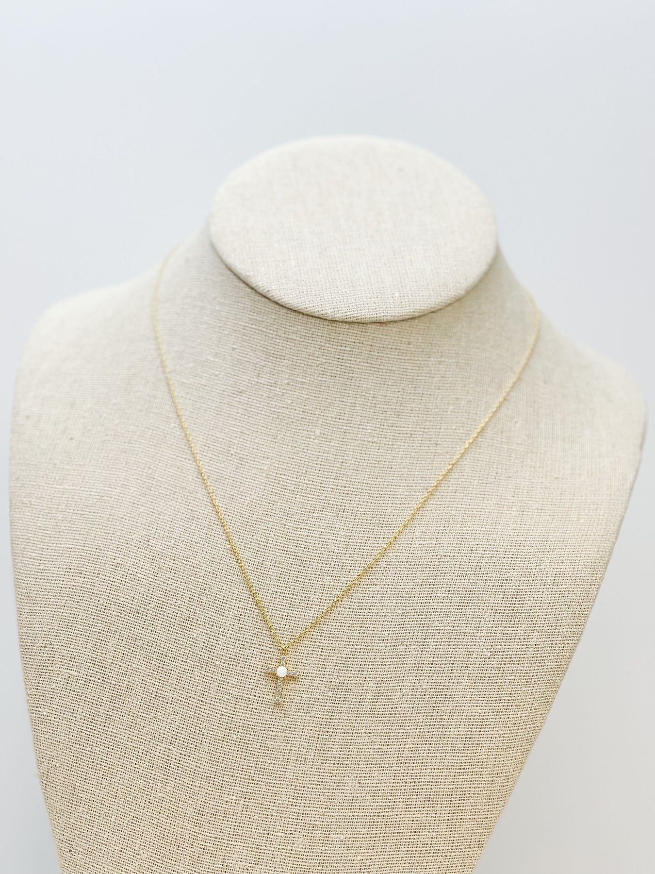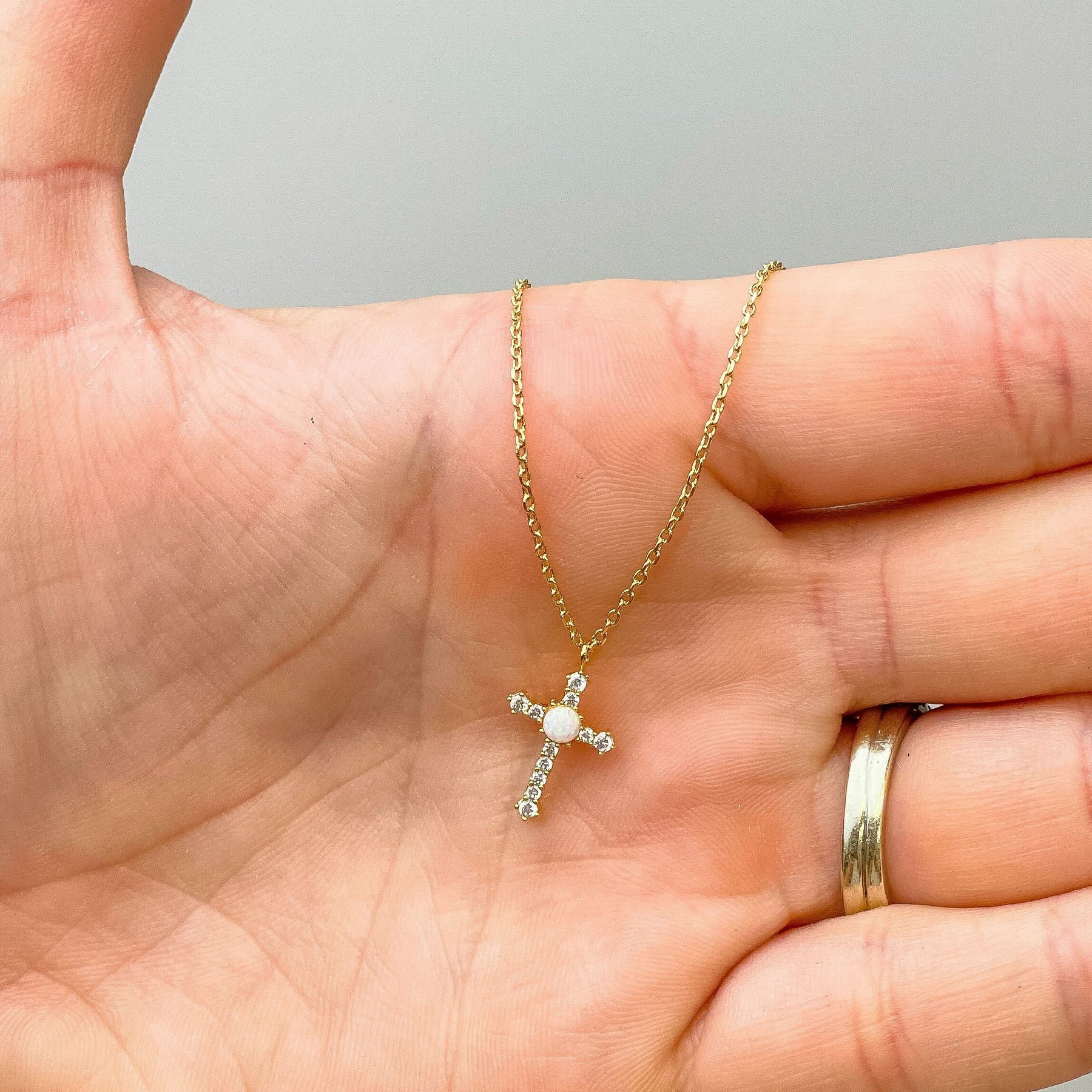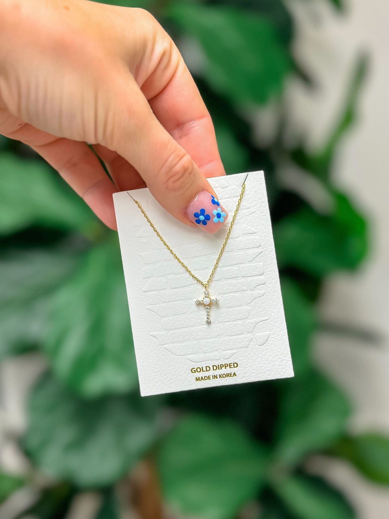 Enhance your style with this Dainty Gold Crystal Cross Pendant Necklace!