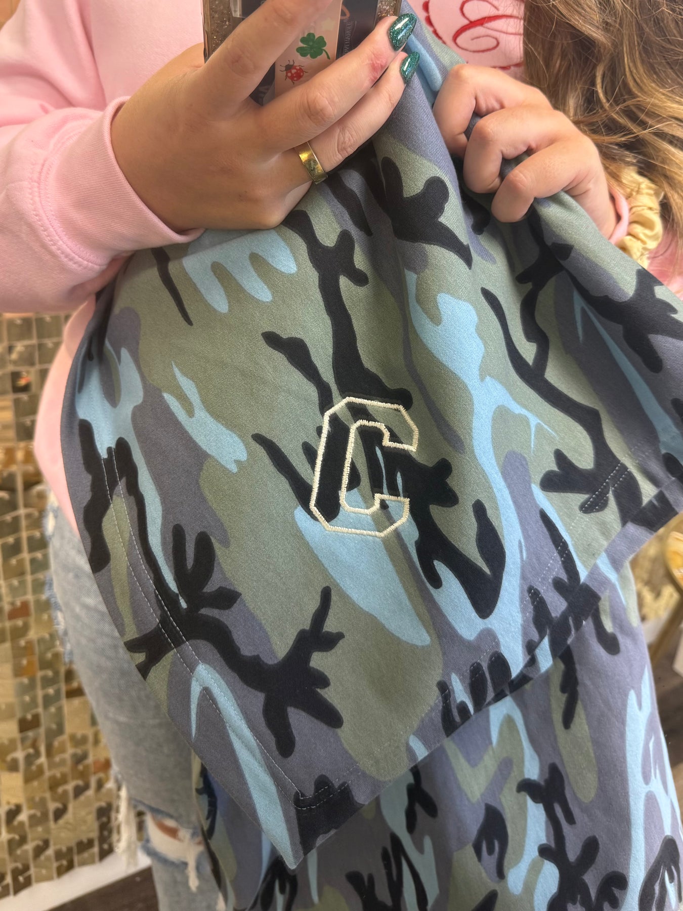 by PrepO DOORBUSTER: Blue Camo Collegiate Embroidered Blanket (Ships in 2-3 Weeks)