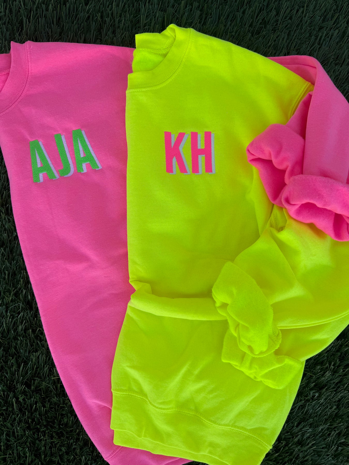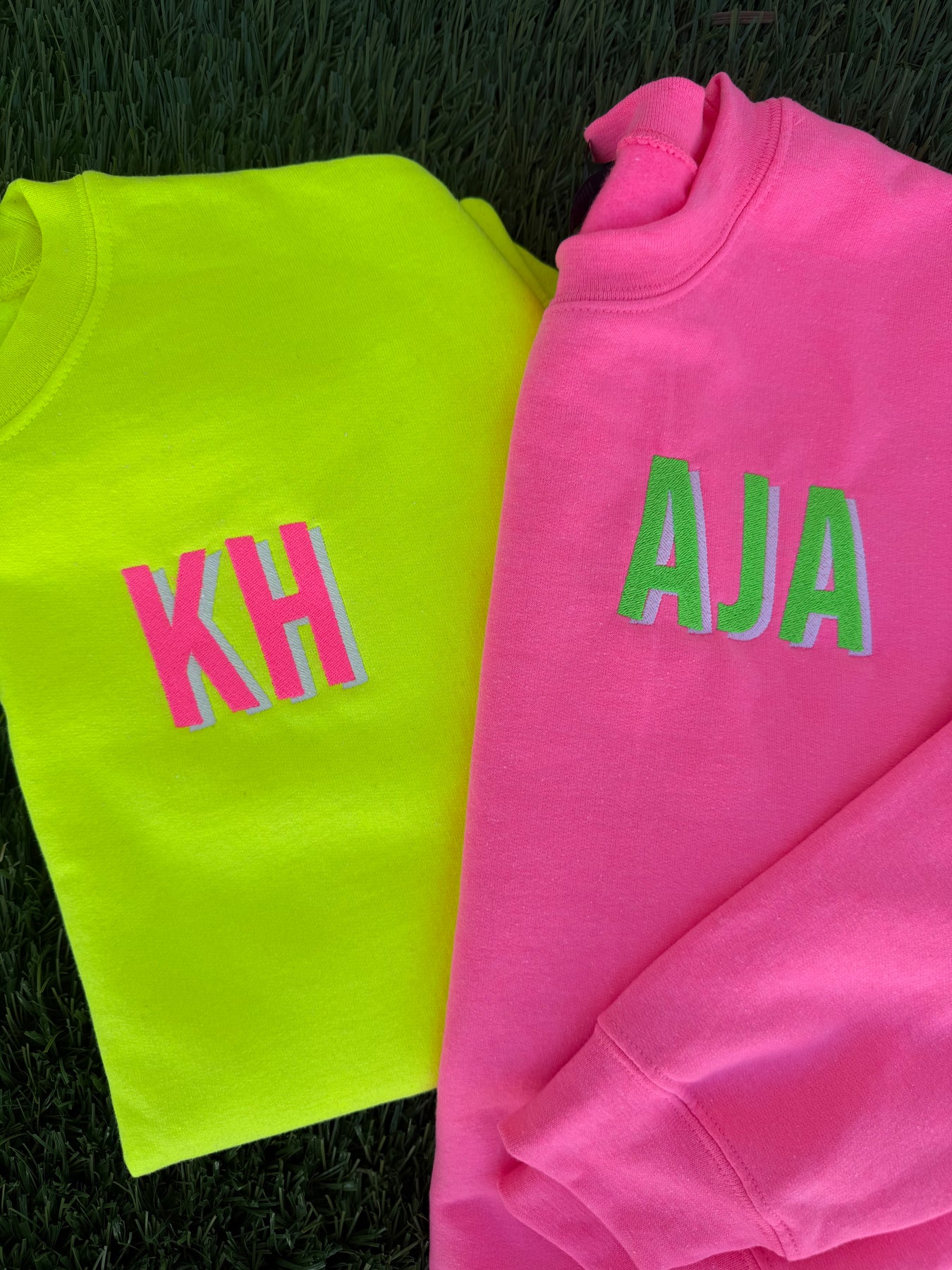 by PrepO: Custom Embroidered Neon Shadow Initial Sweatshirt (Ships in 2-3 Weeks)