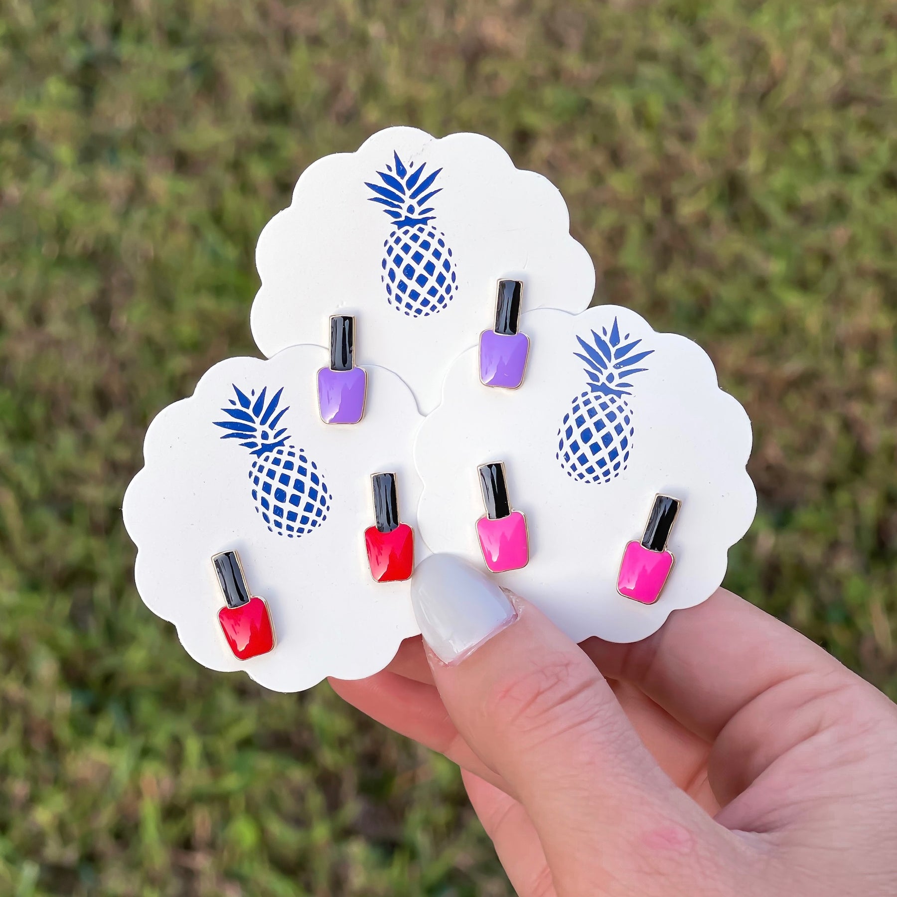Nail Polish Bottle Signature Enamel Stud Earrings - Purple