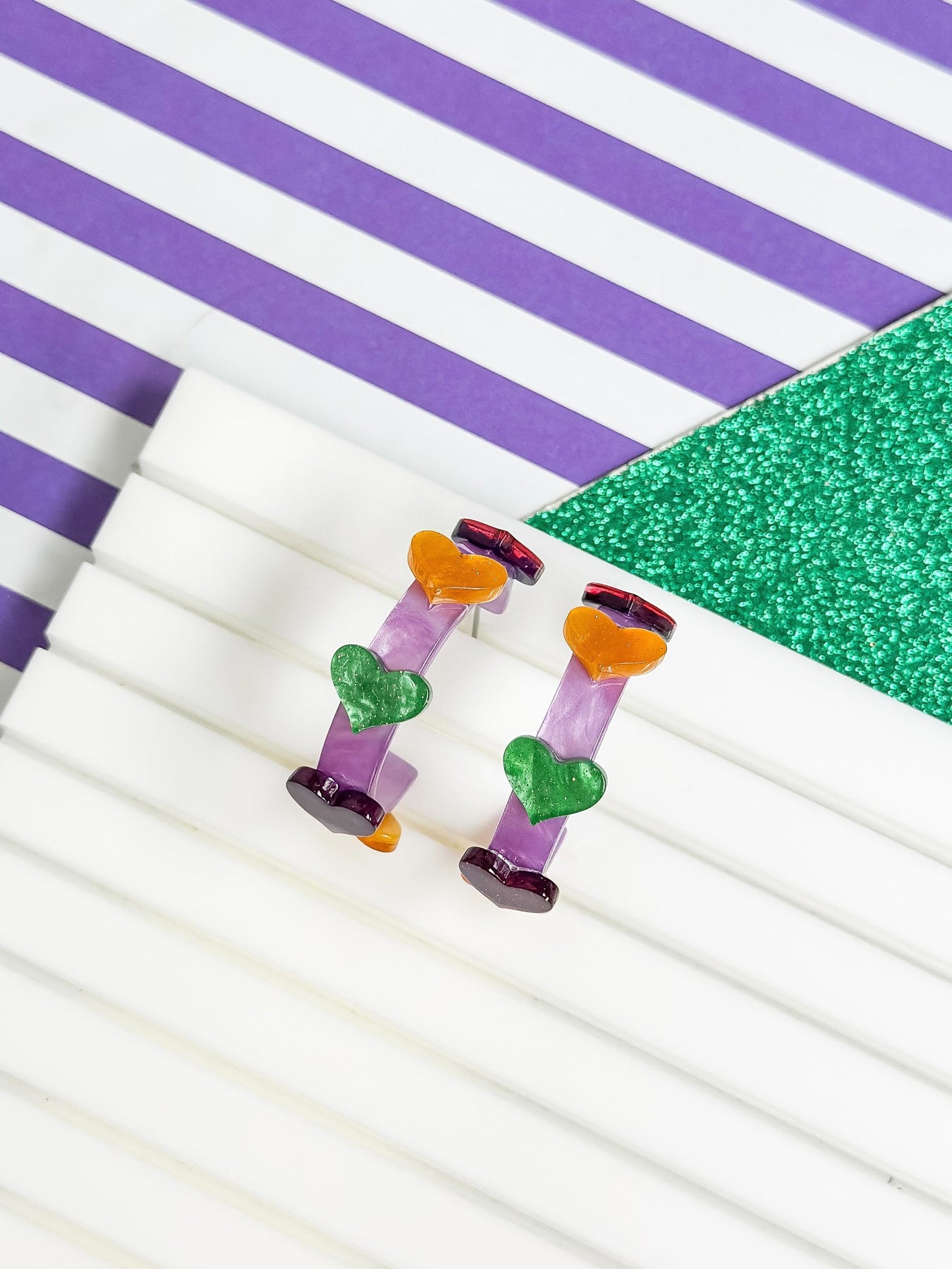 Mardi Gras Heart Hoop Earrings