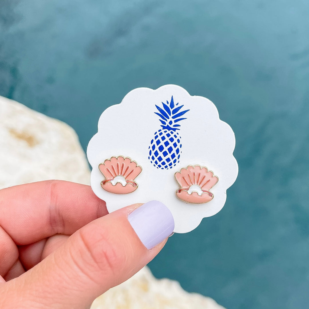 Pearl Shell Signature Enamel Studs by Prep Obsessed