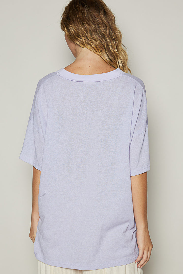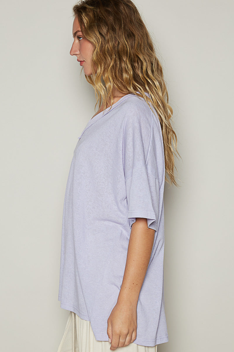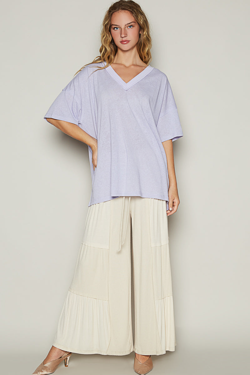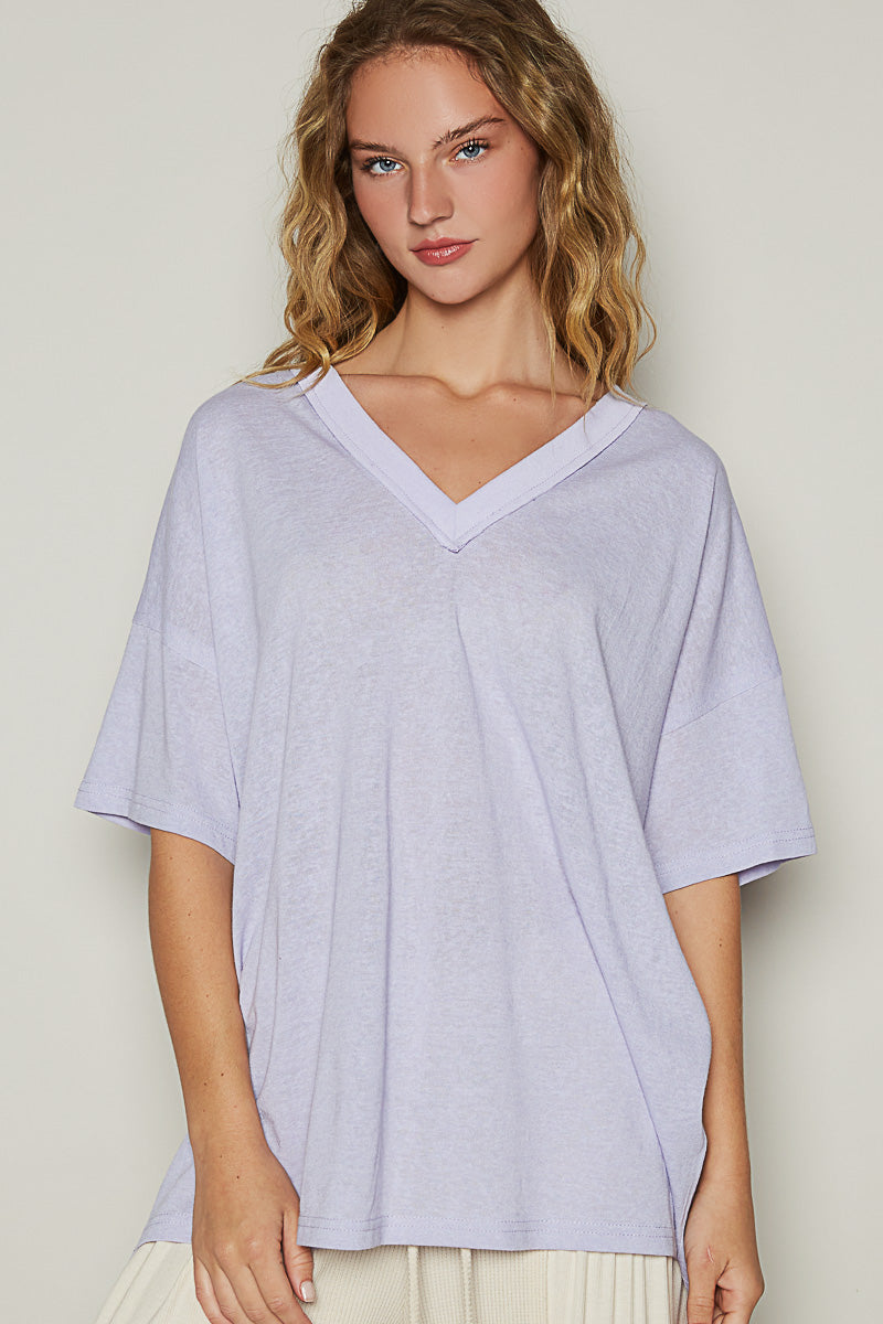 Drop Shoulder V-Neck Basic Tee by POL - Lilac
