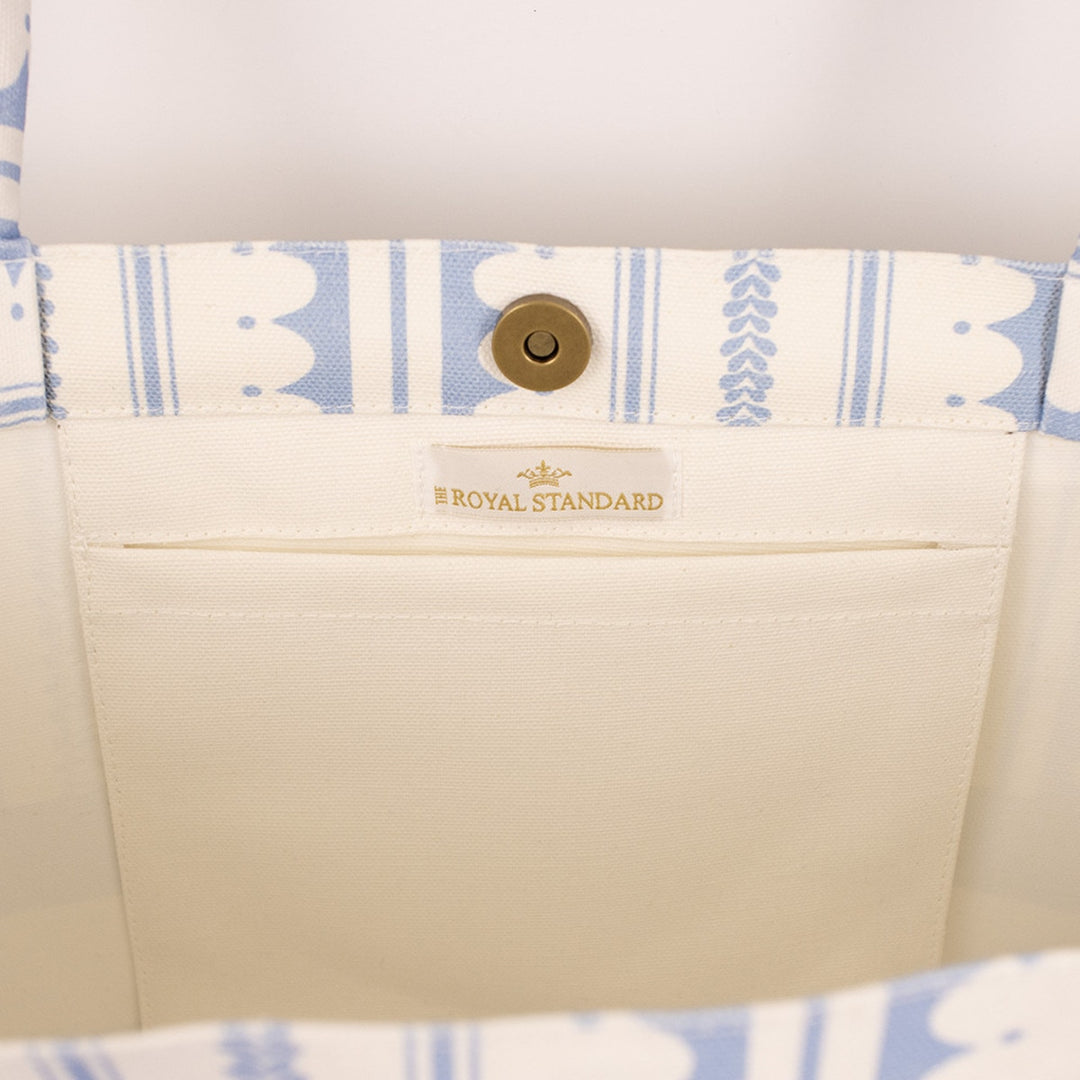 The Chantilly Classic Tote White/Blue 19x14x7.5 is a stylish and spacious bag that is perfect for everyday use. Made with durable materials and a classic design, it is sure to be a reliable and fashionable accessory for any outfit.