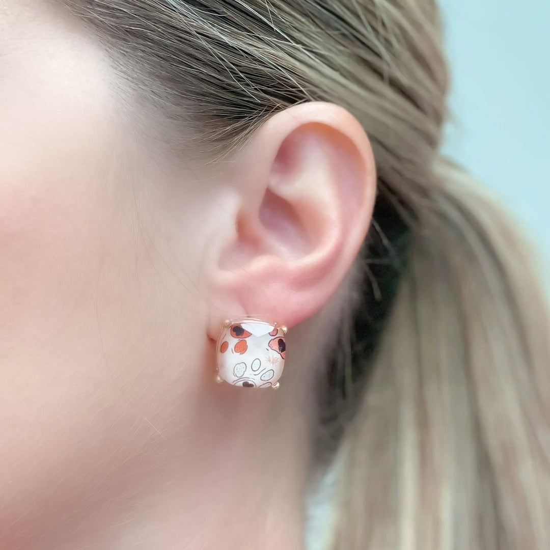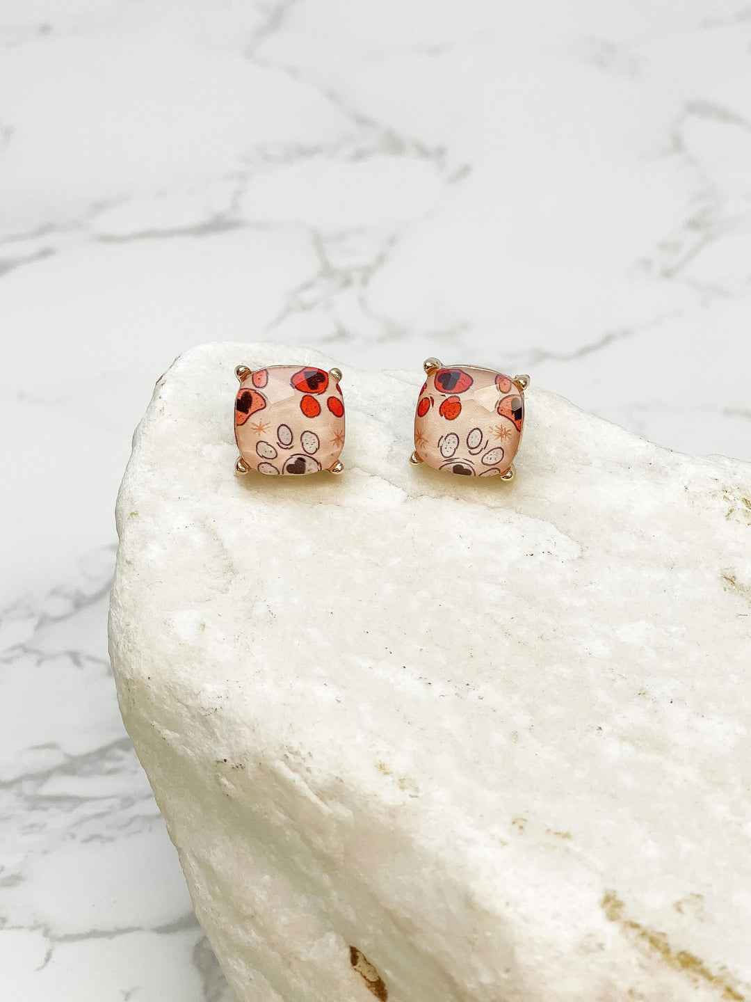 Heart Paw Print Glass Stud Earrings