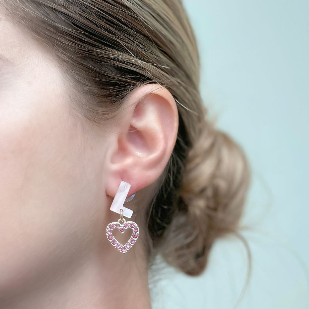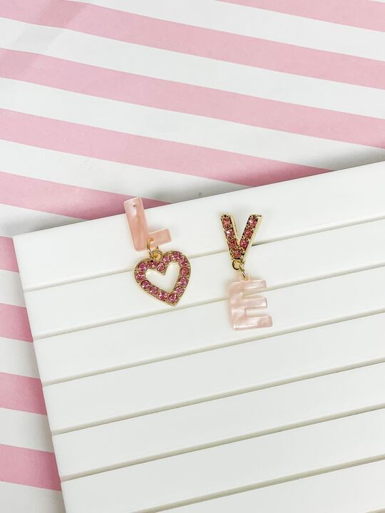 These 'Love' Glitzy Acrylic Heart Dangle Earrings add sparkle and shine to any outfit. The glitzy dangle feature offers a touch of glamour to your look, perfect for a night out or special occasion.