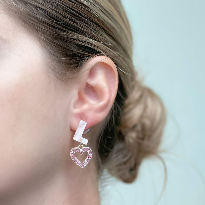 'Love' Glitzy Acrylic Heart Dangle Earrings