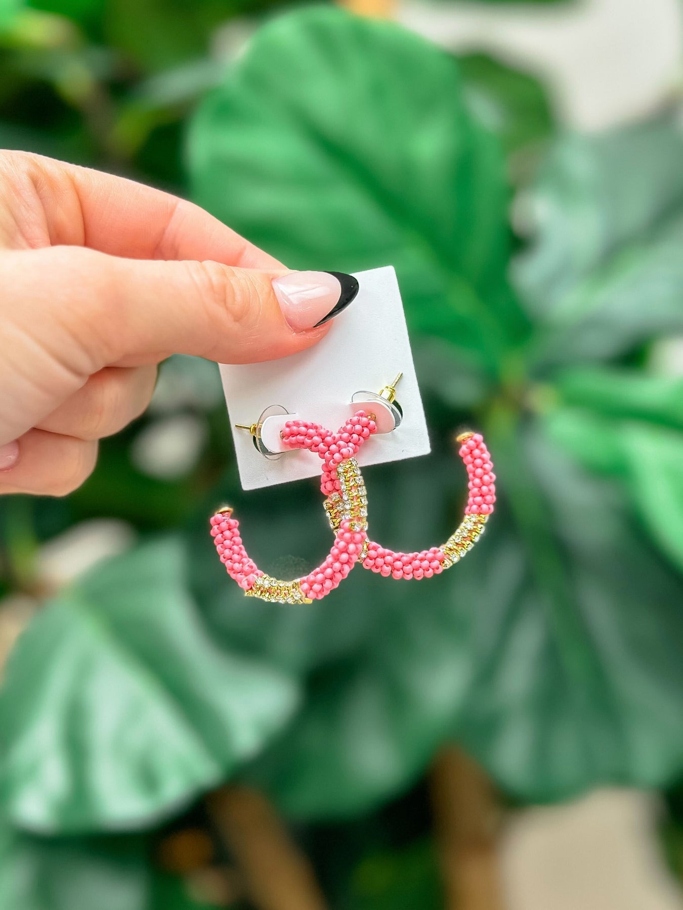 Add a pop of color and fun to your outfit with our Seed Bead & Rhinestone Hoop Earrings! Perfect for Valentine's Day, these lightweight earrings are sure to make a statement.