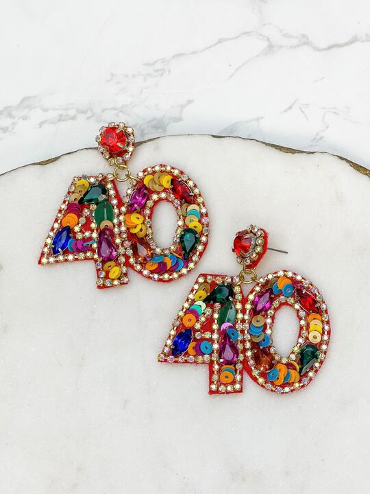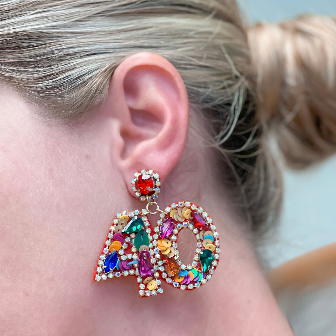 '40' Birthday Celebration Rhinestone Drop Earrings
