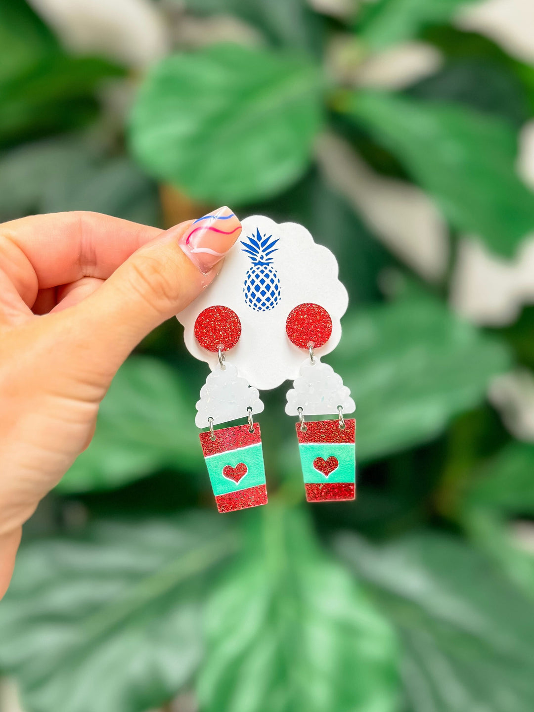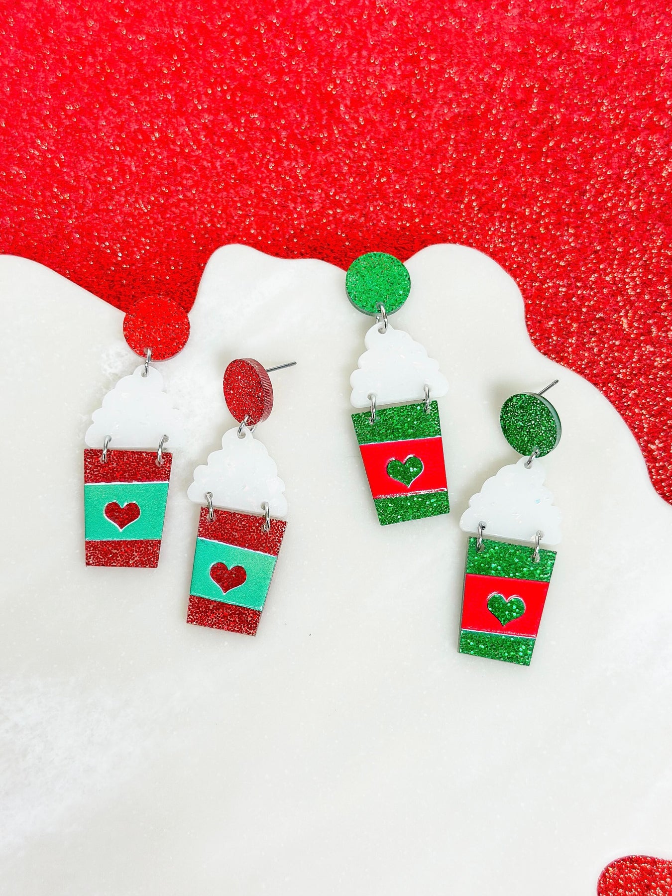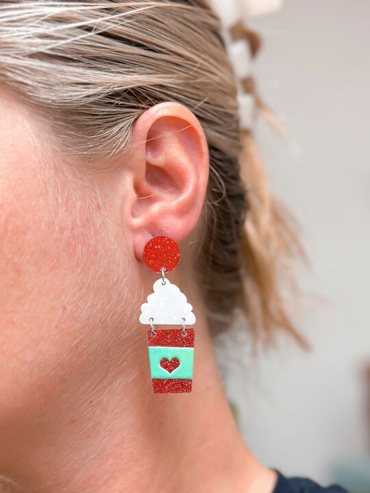Acrylic Hot Cocoa Dangle Earrings - Red