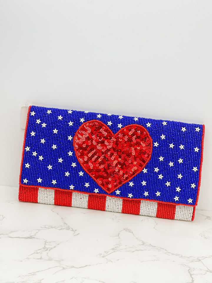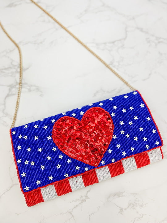 USA Heart Sequin Crossbody Chain Clutch