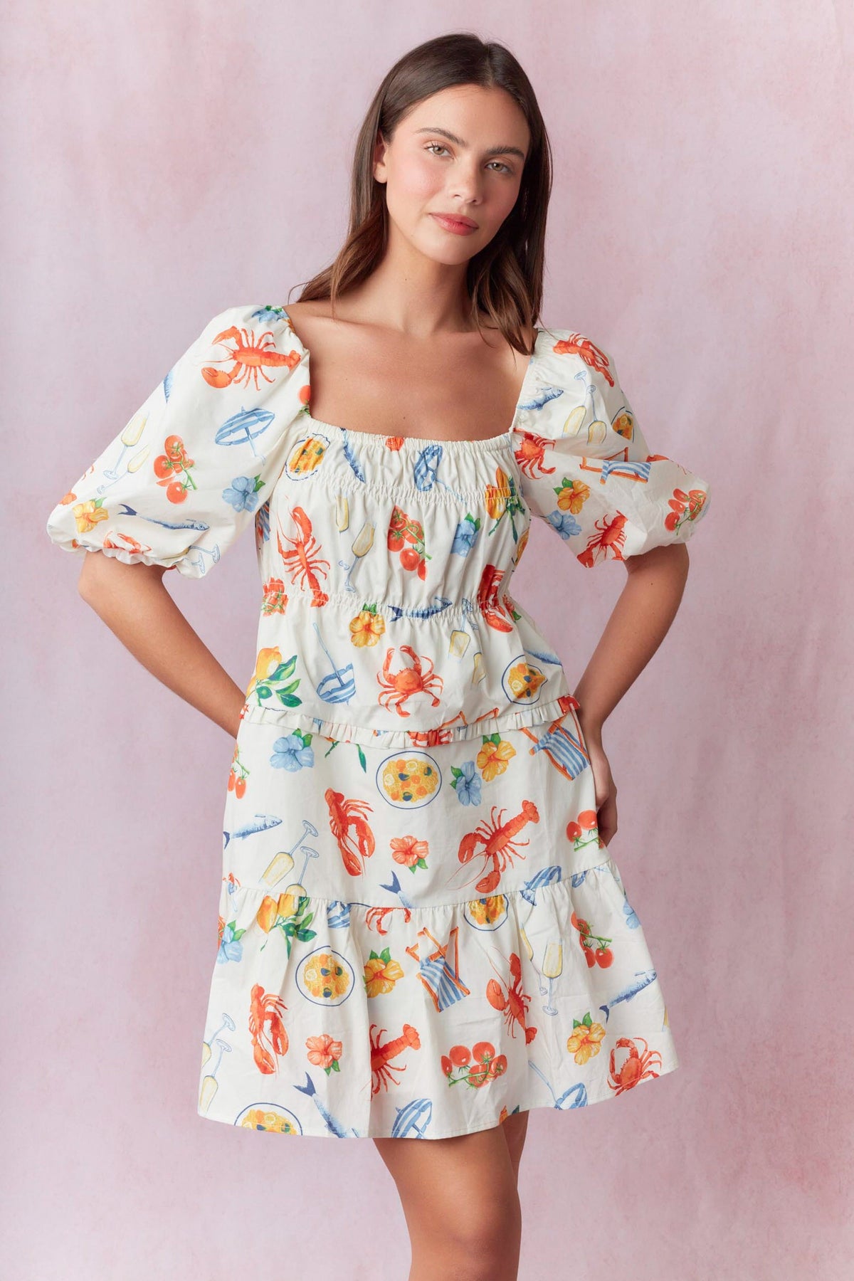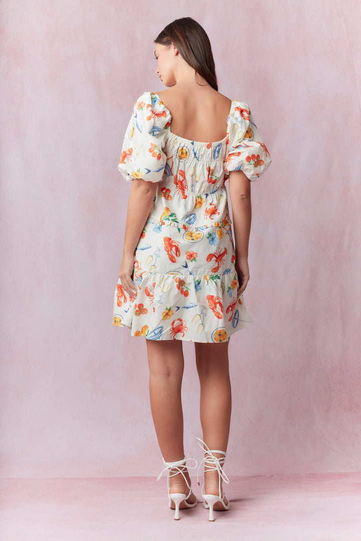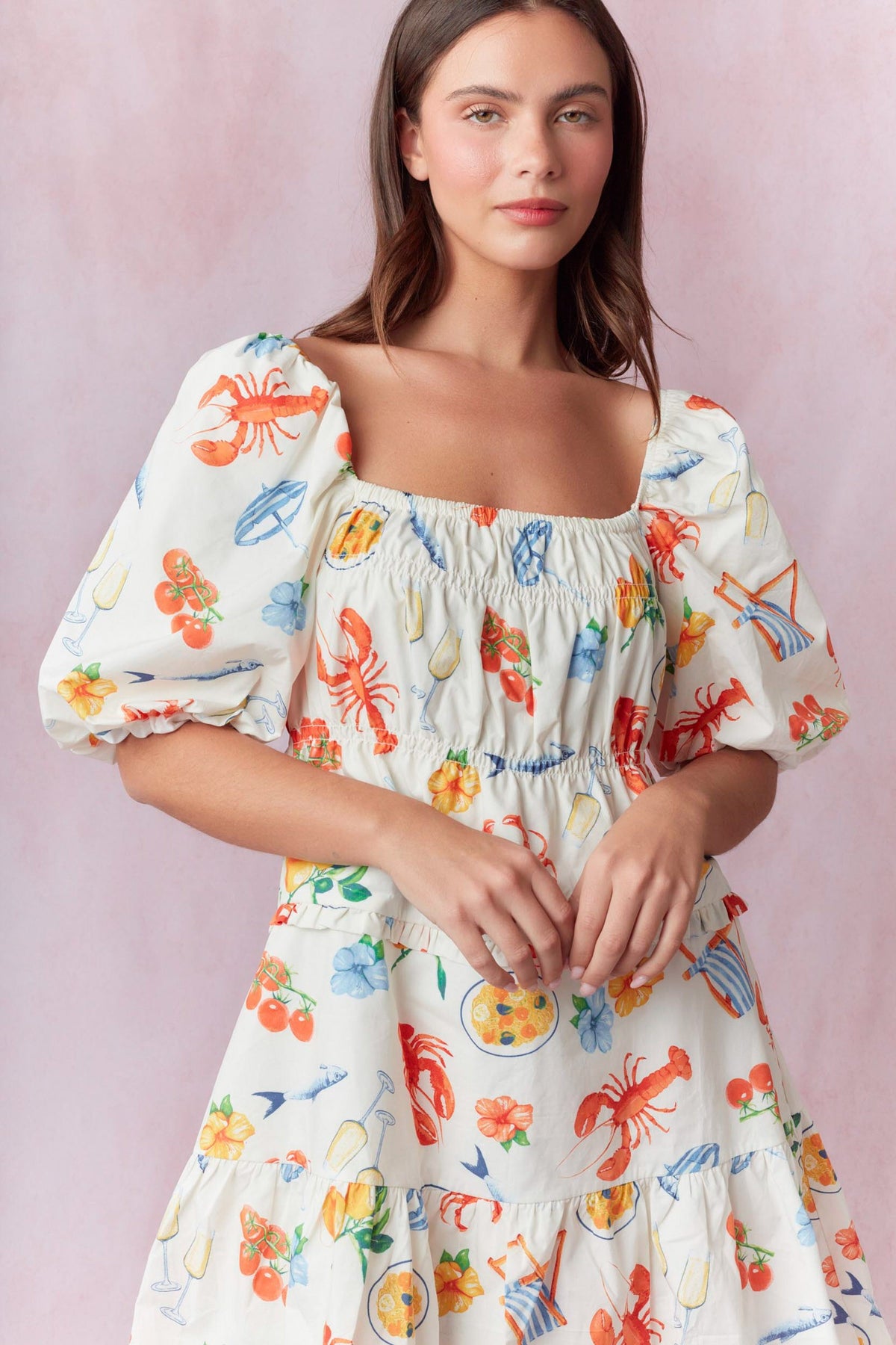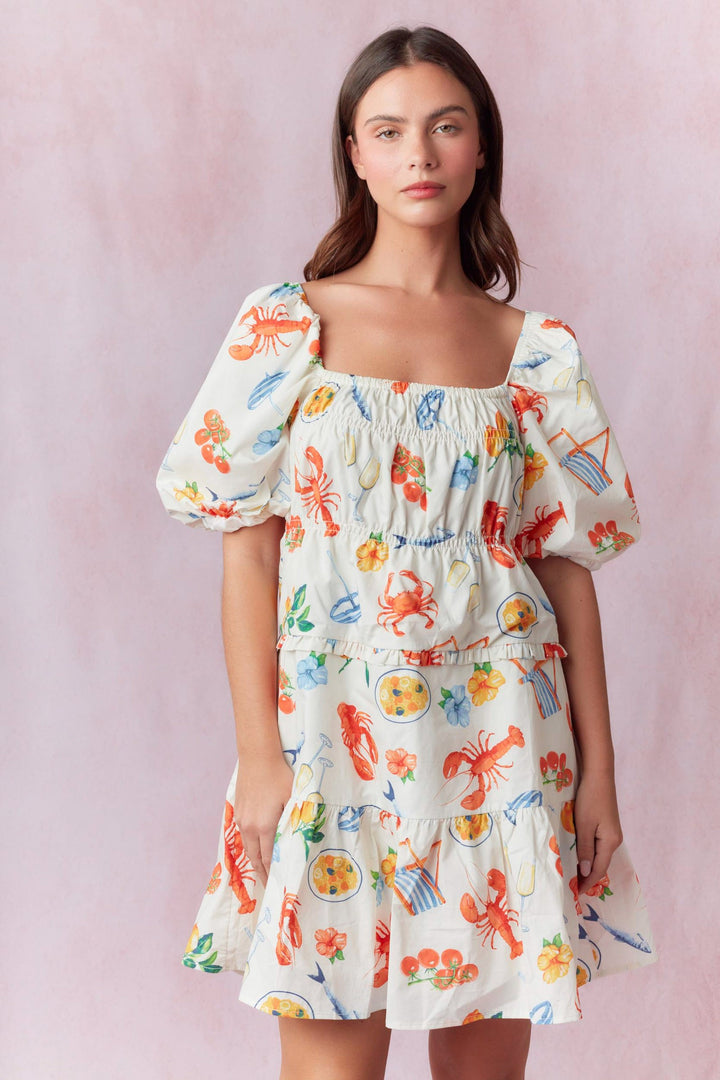 Resort Theme Bubble Sleeve Mini Dress by Peach Love California
