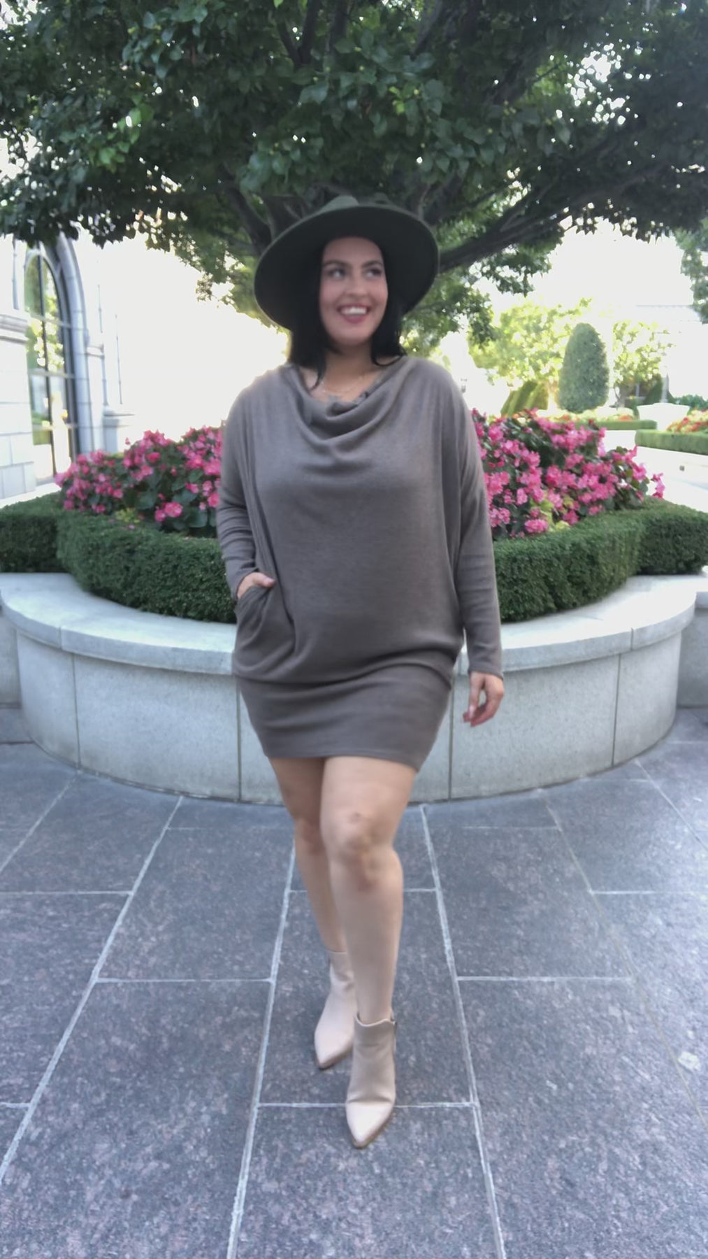 Be True Cowl Neck Knit Mini Dress In Cocoa