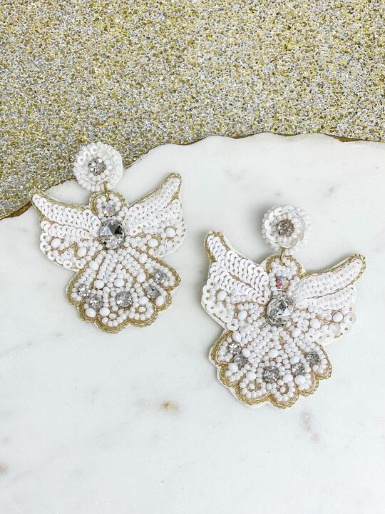 Beaded Angel Dangle Earrings