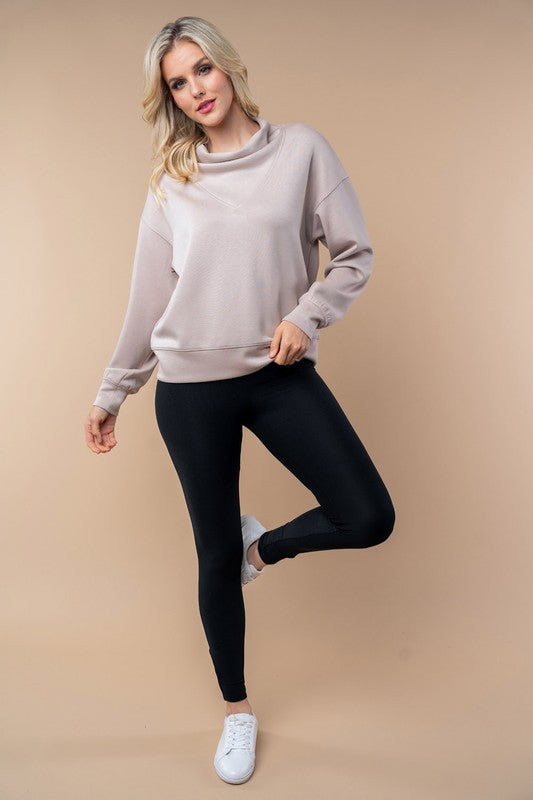 Luxe Scuba Cowl Neck Pullover by White Birch