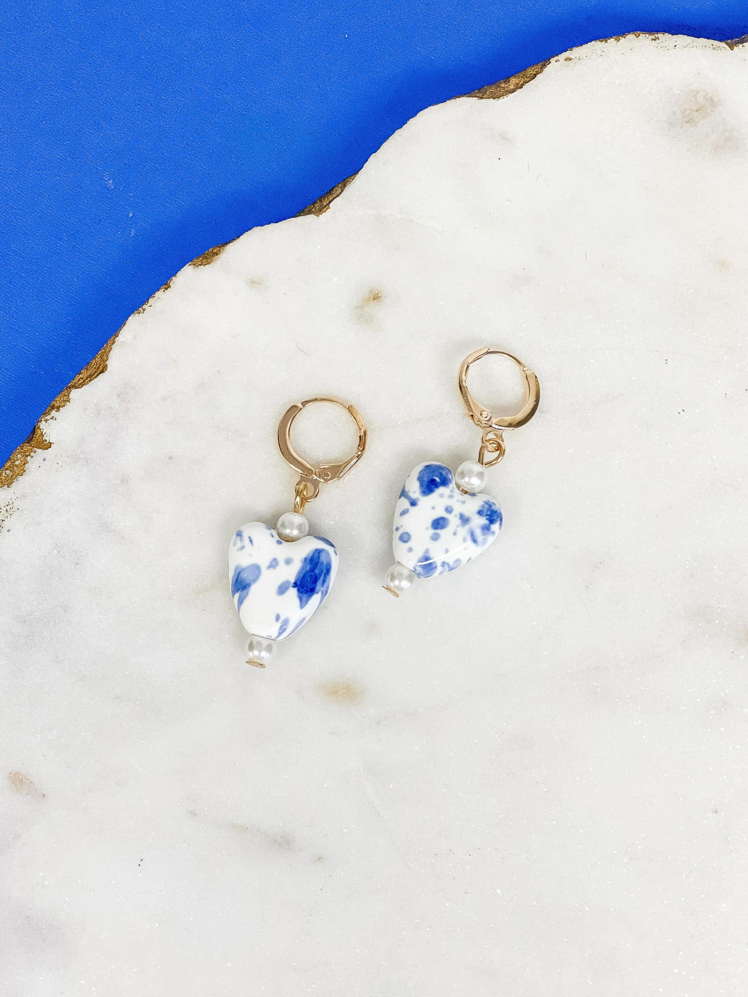 These elegant Blue & White Ceramic Pearl Drop Earrings feature delicate blue and white dangles, adding a touch of sophistication to any outfit. Made from high quality ceramic, these earrings are durable and timeless. Easily elevate your style with these stunning earrings.