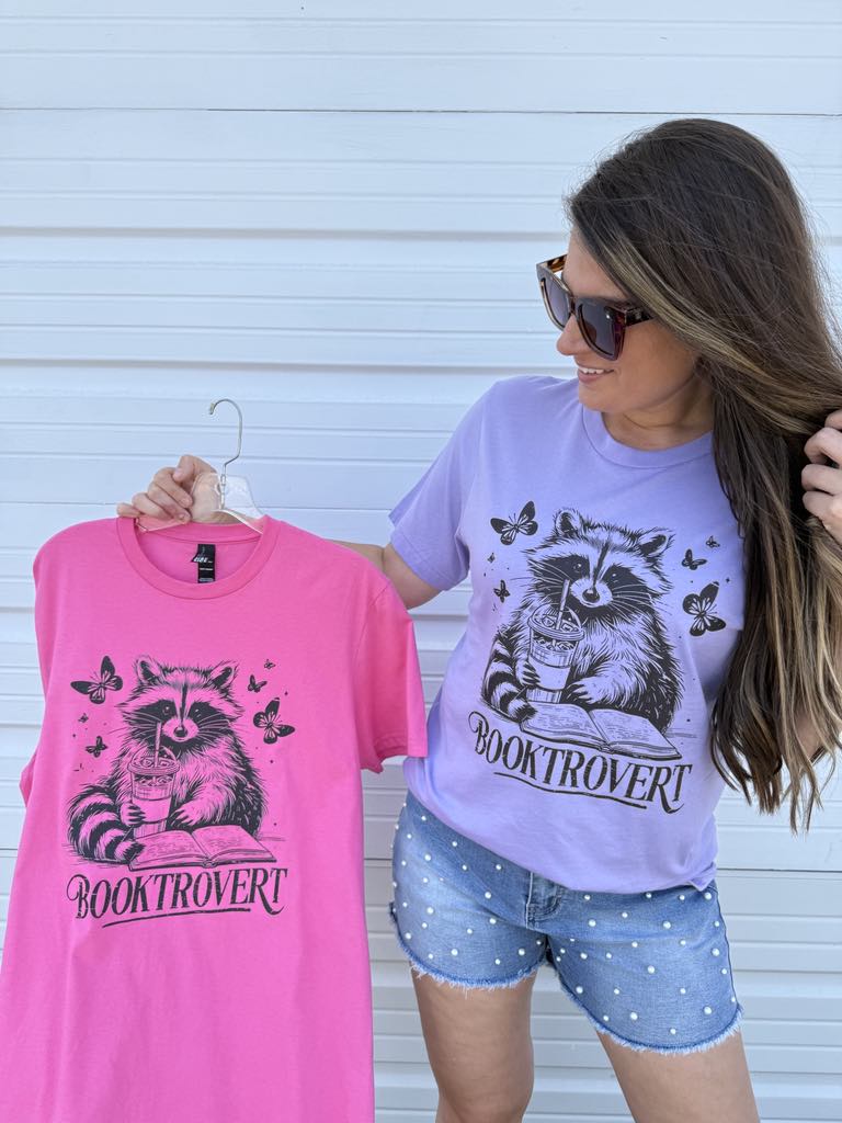 by PrepO: Booktrovert Reading Raccoon Short Sleeve Graphic Tee (Ships in 1-2 Weeks)