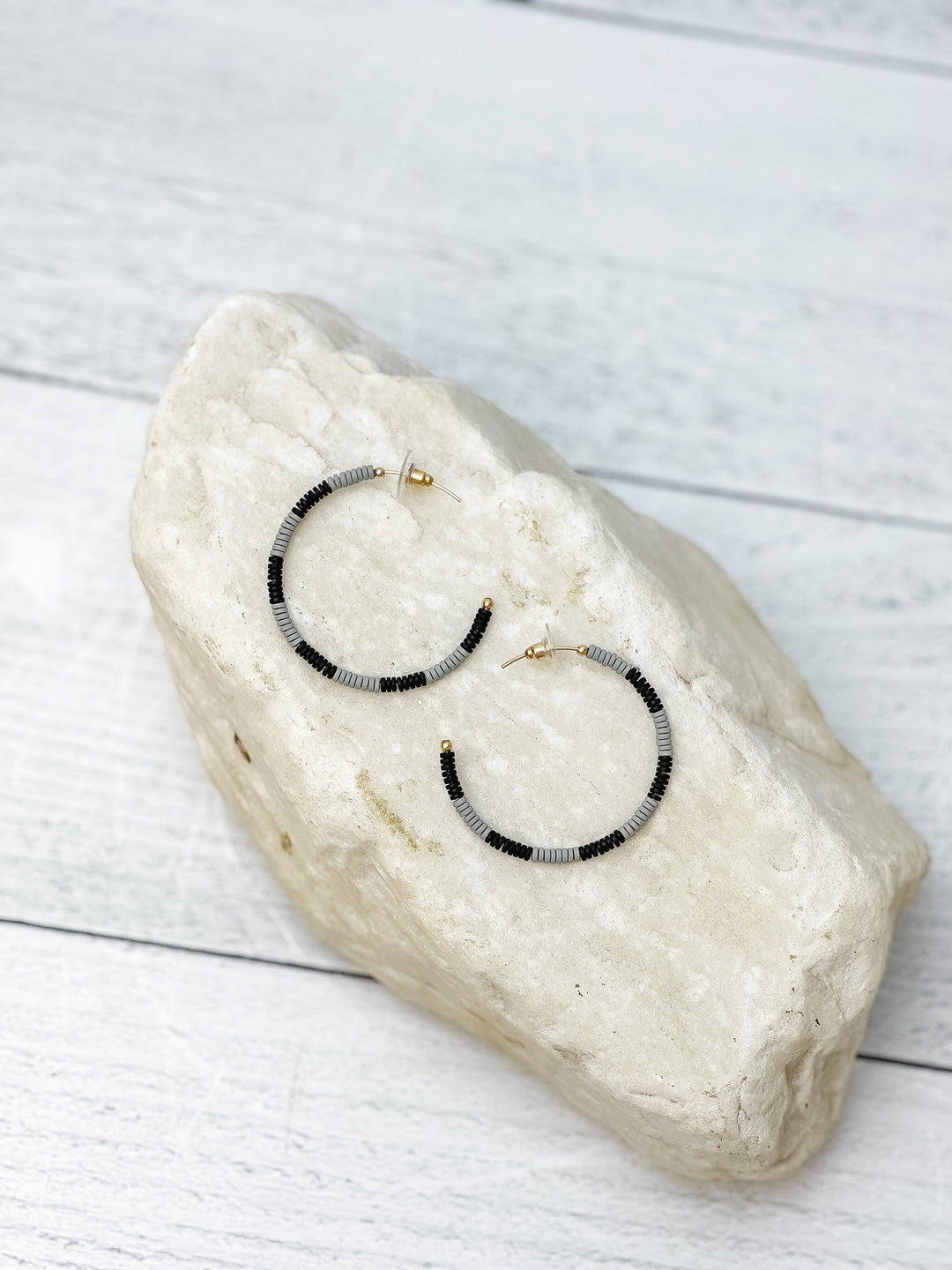 Coated Metal Beaded Hoop Earrings - Gray Multi