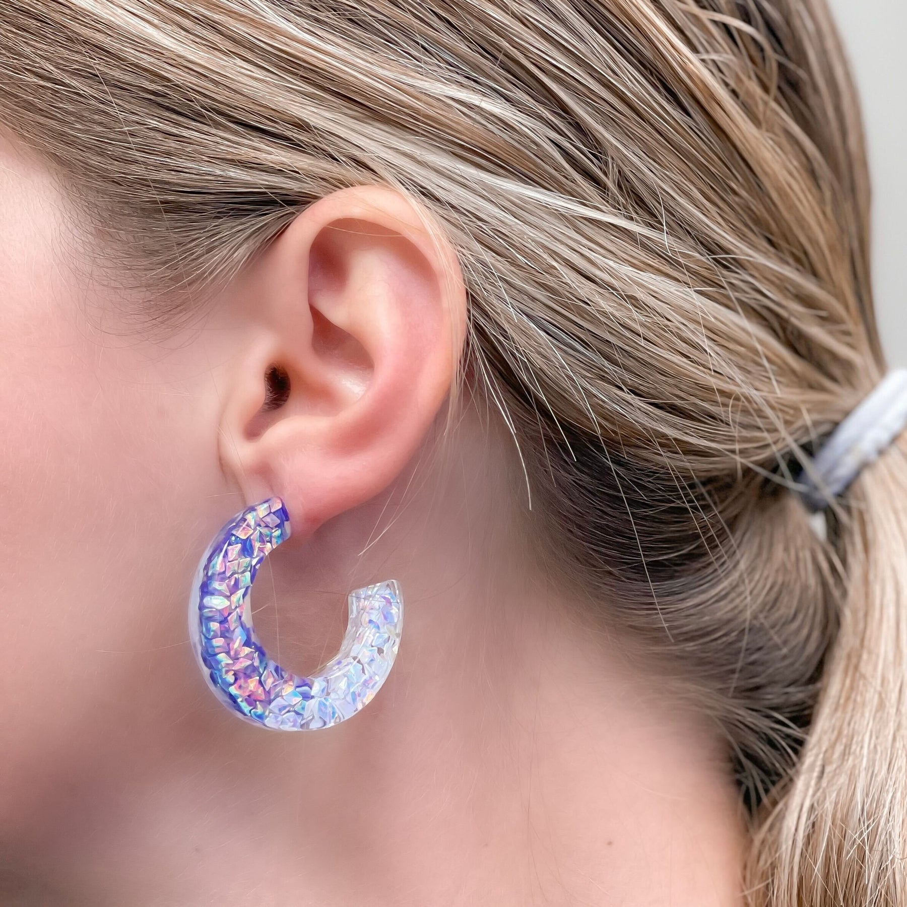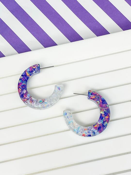 Colorful Clear Resin Hoop Earrings - Purple