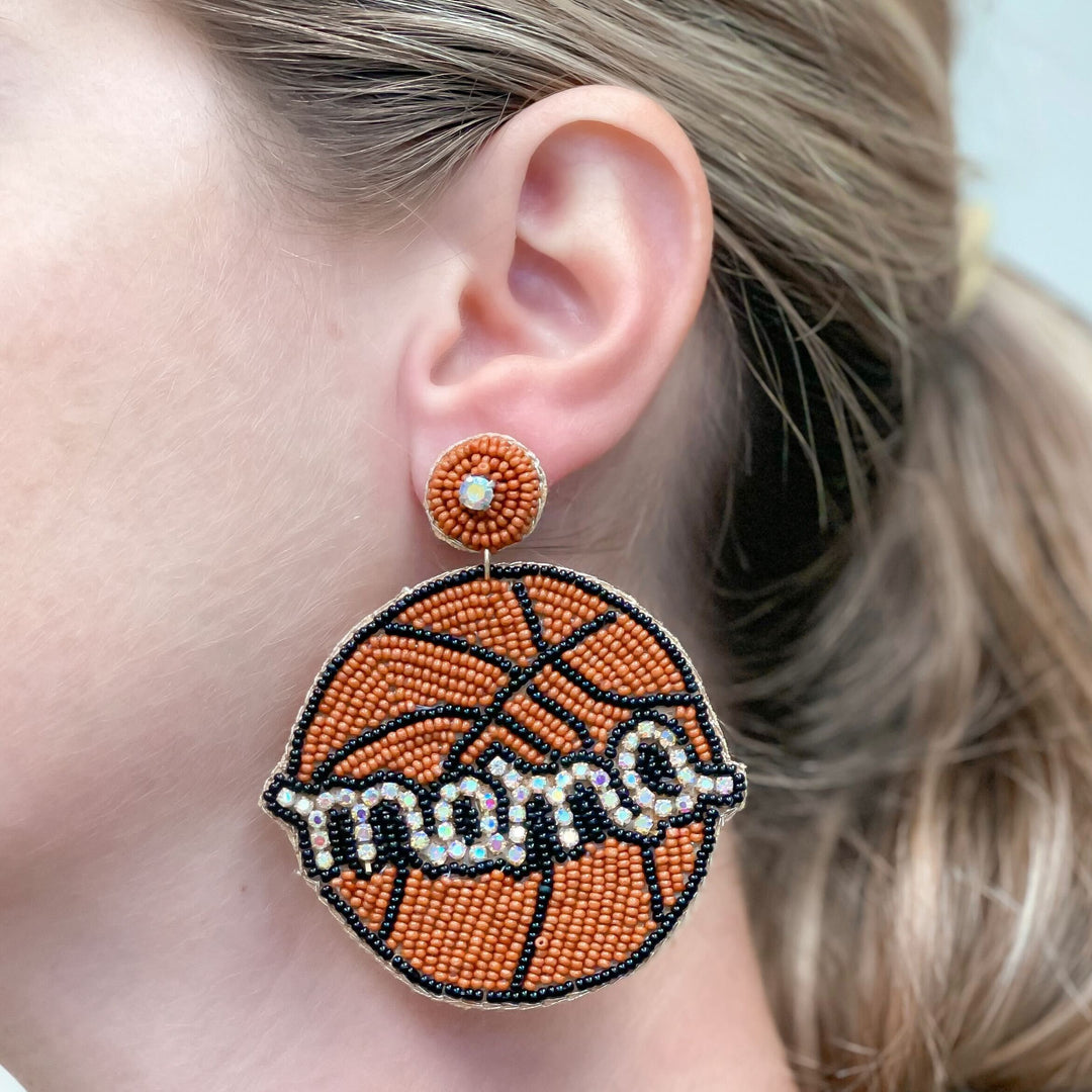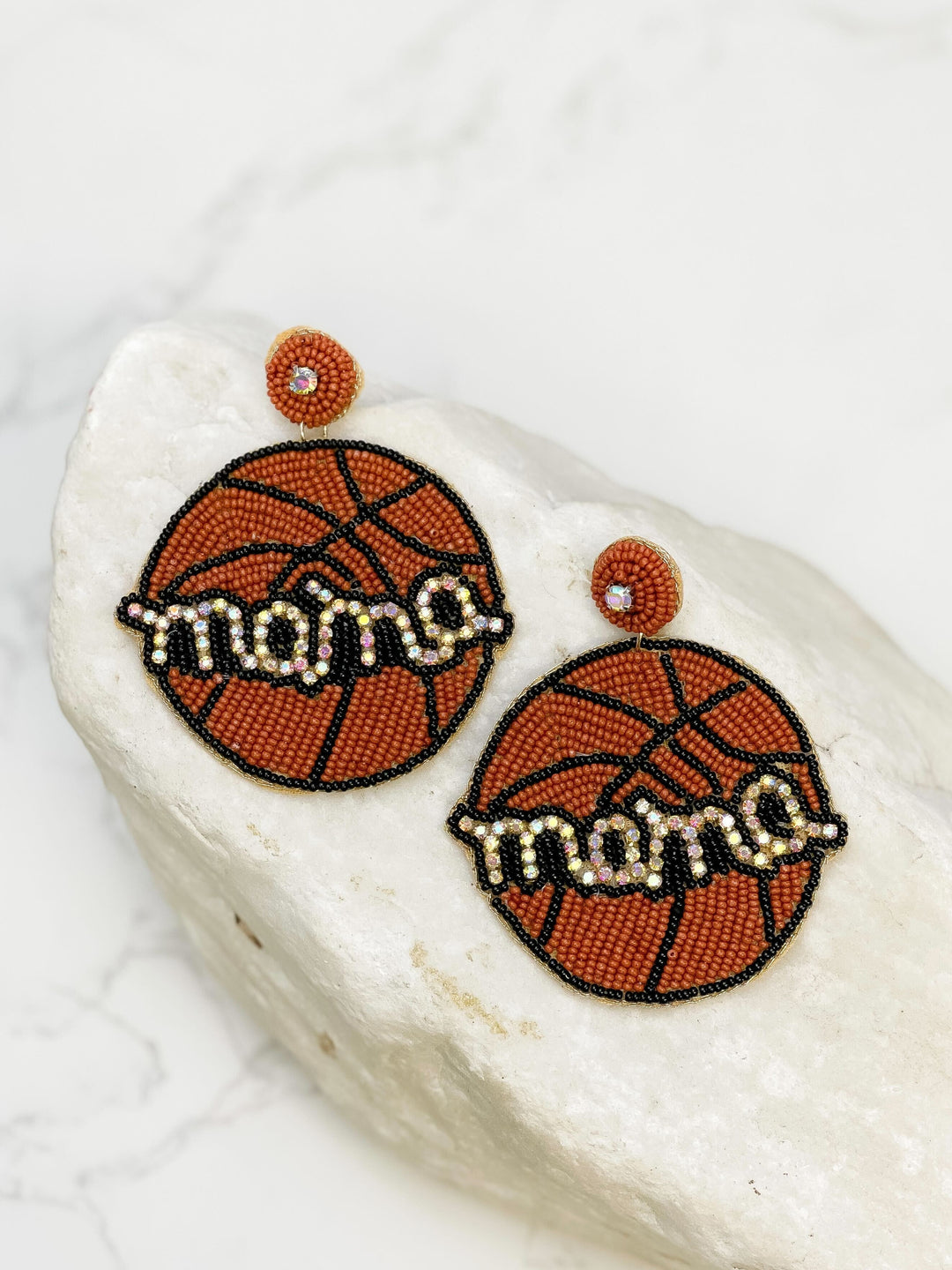 Glitzy Basketball Mama Beaded Dangle Earrings