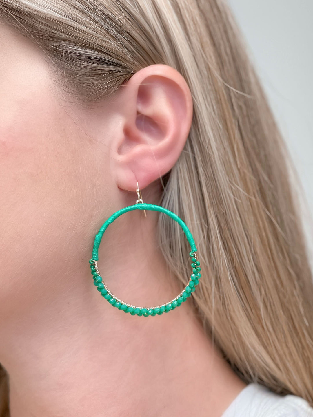 Skinny Open Beaded Dangle Earrings - Green