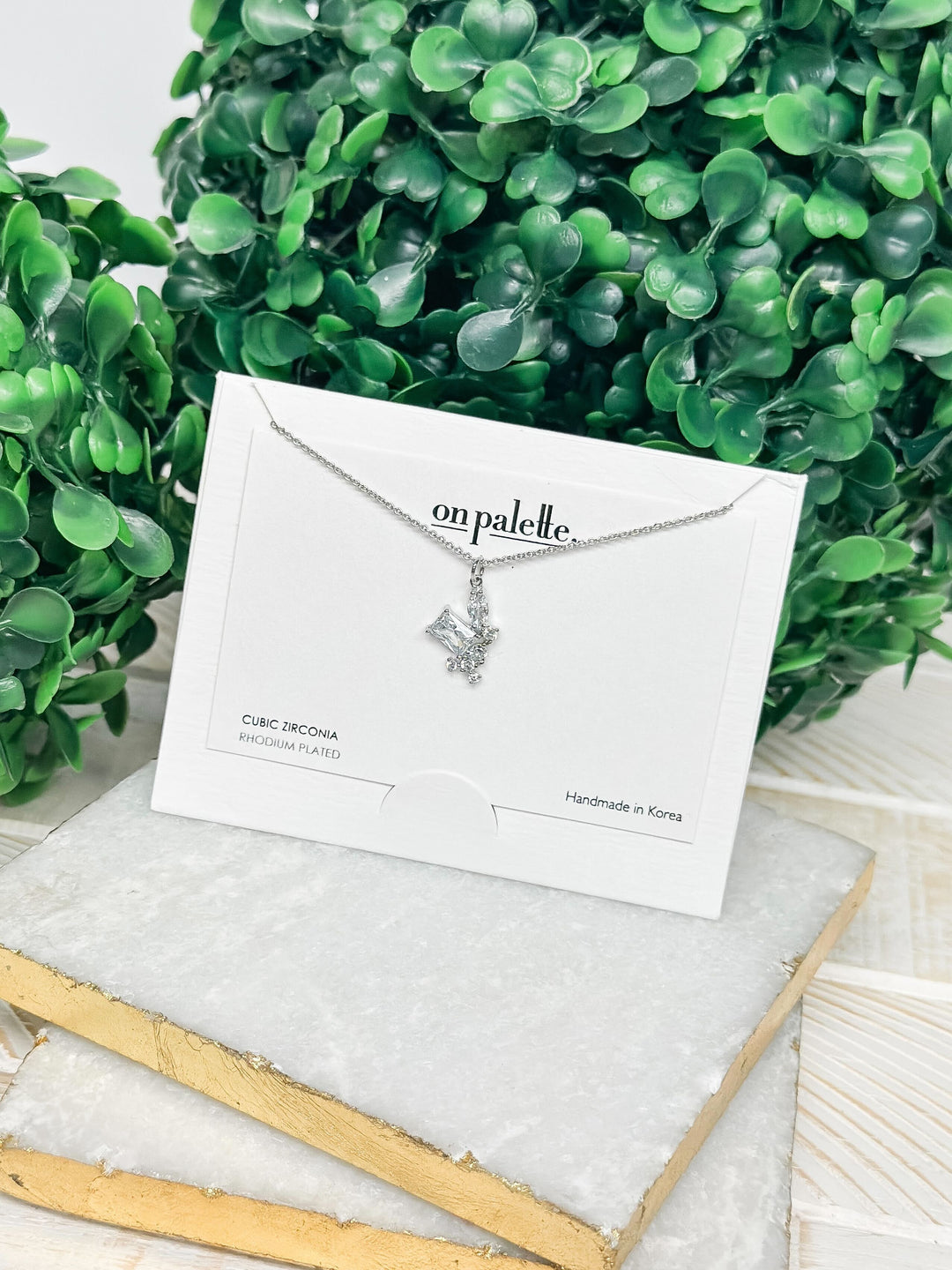 Cubic Zirconia Dainty Cluster Pendant Necklace - Silver