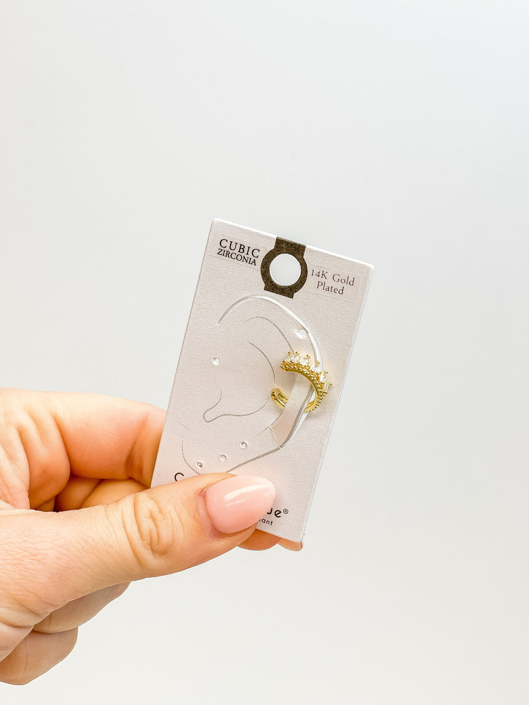 Cubic Zirconia Baguette Ear Cuff - Gold