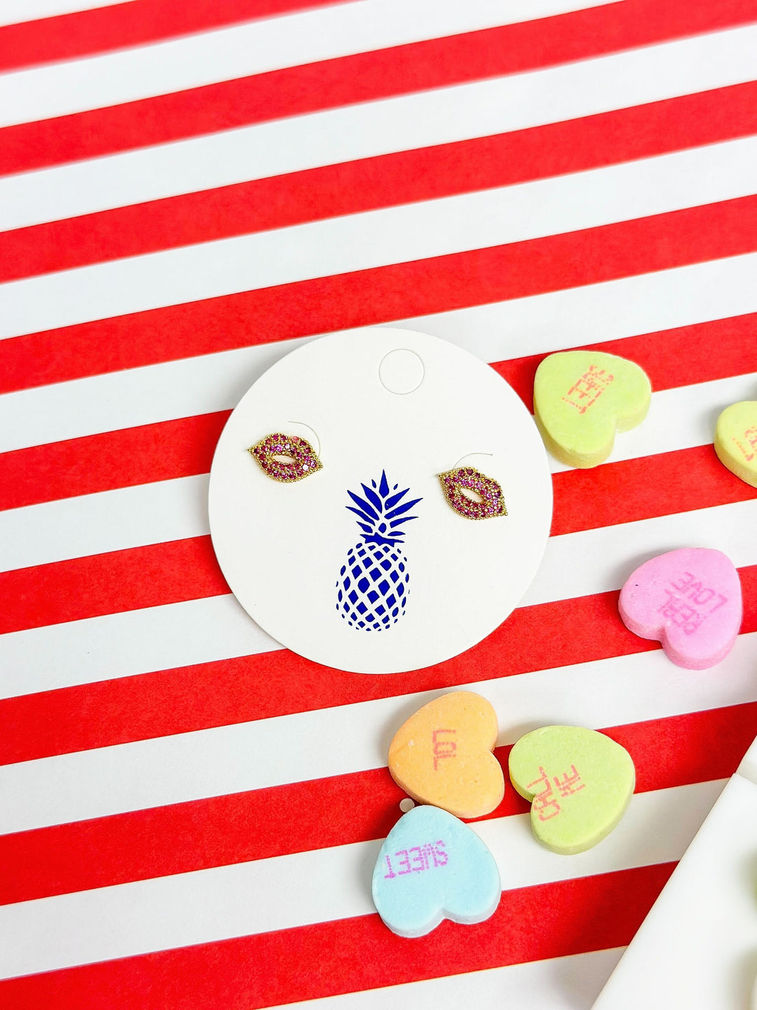 Cubic Zirconia Pave Lips Stud Earrings - Gold