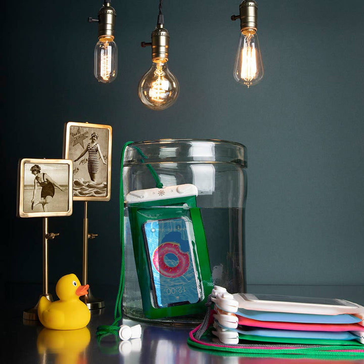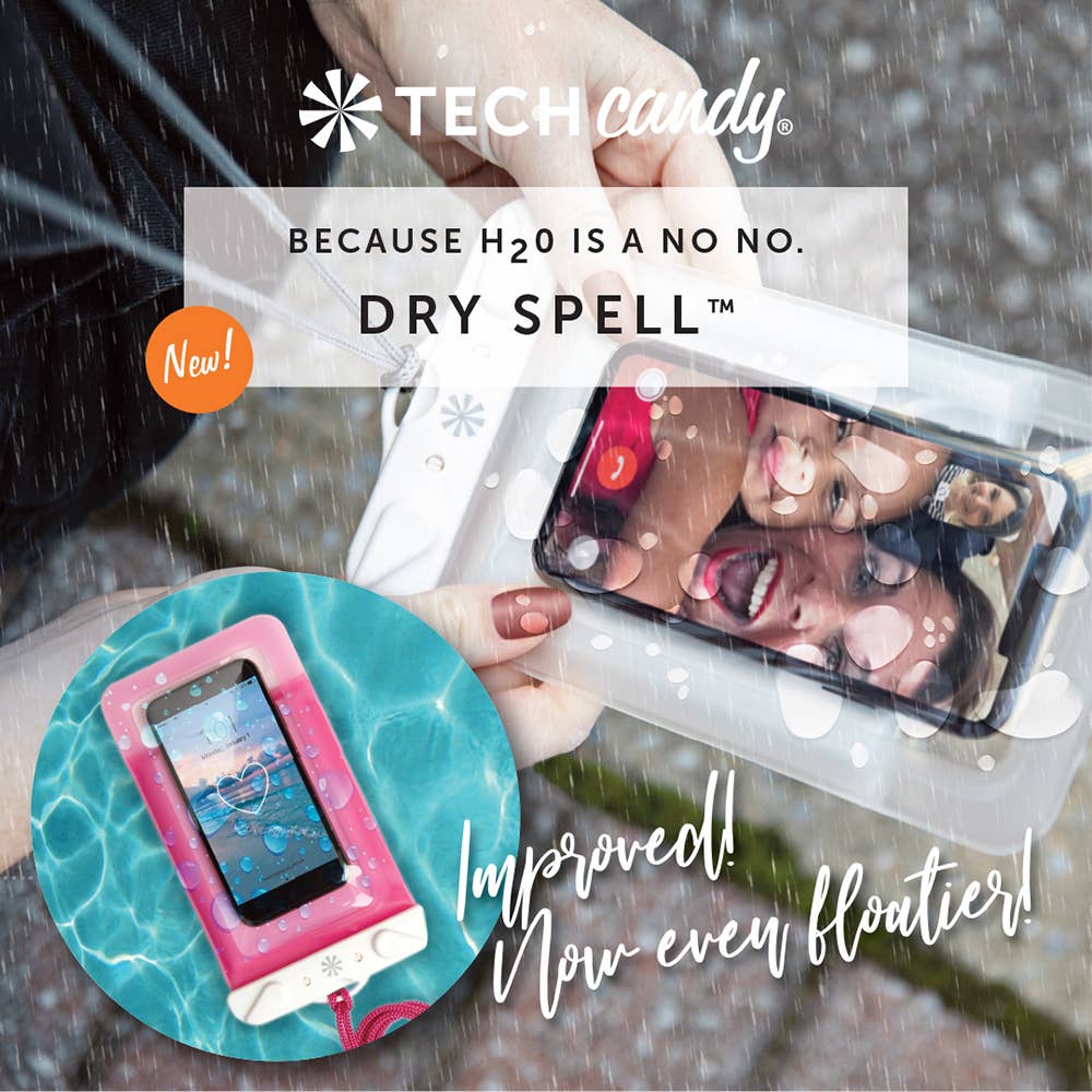 Perfect protection for sporting, pool relaxing & beach bumming. Locks clamp your device safely inside. Clear window lets you keep texting, talking & taking pics. Also, the DRY SPELL floats. Yes, floats! No fear of your phone ending up on the lake bottom. Buoyant foam keeps even heavier phones from sinking to a watery burial. Not meant for scuba diving or shark nuzzling, but this bag keeps the elements at bay as you stroll the sand or fish The Big One. Fits phones with displays up to 6.5”.