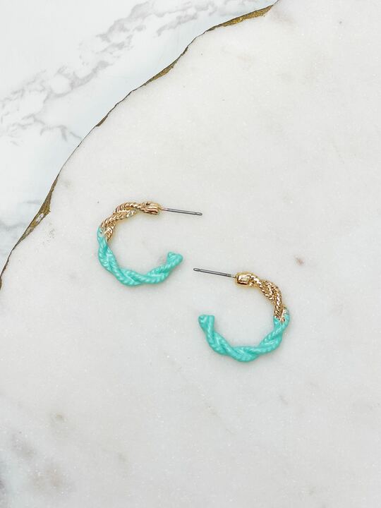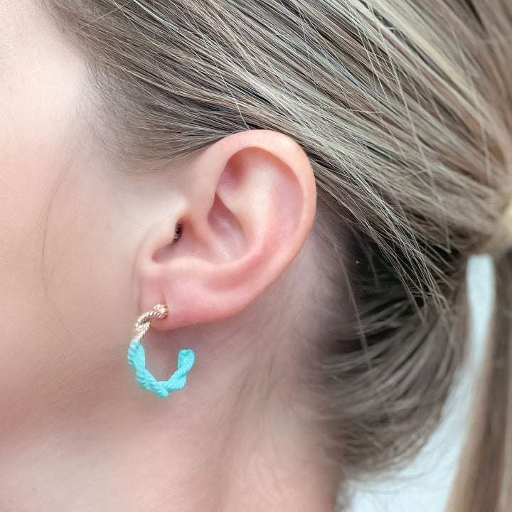 Enamel-Dipped Twisted Gold Hoop Earrings - Blue
