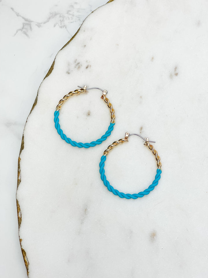 Enamel Gold Twist Hoop Earrings - Turquoise