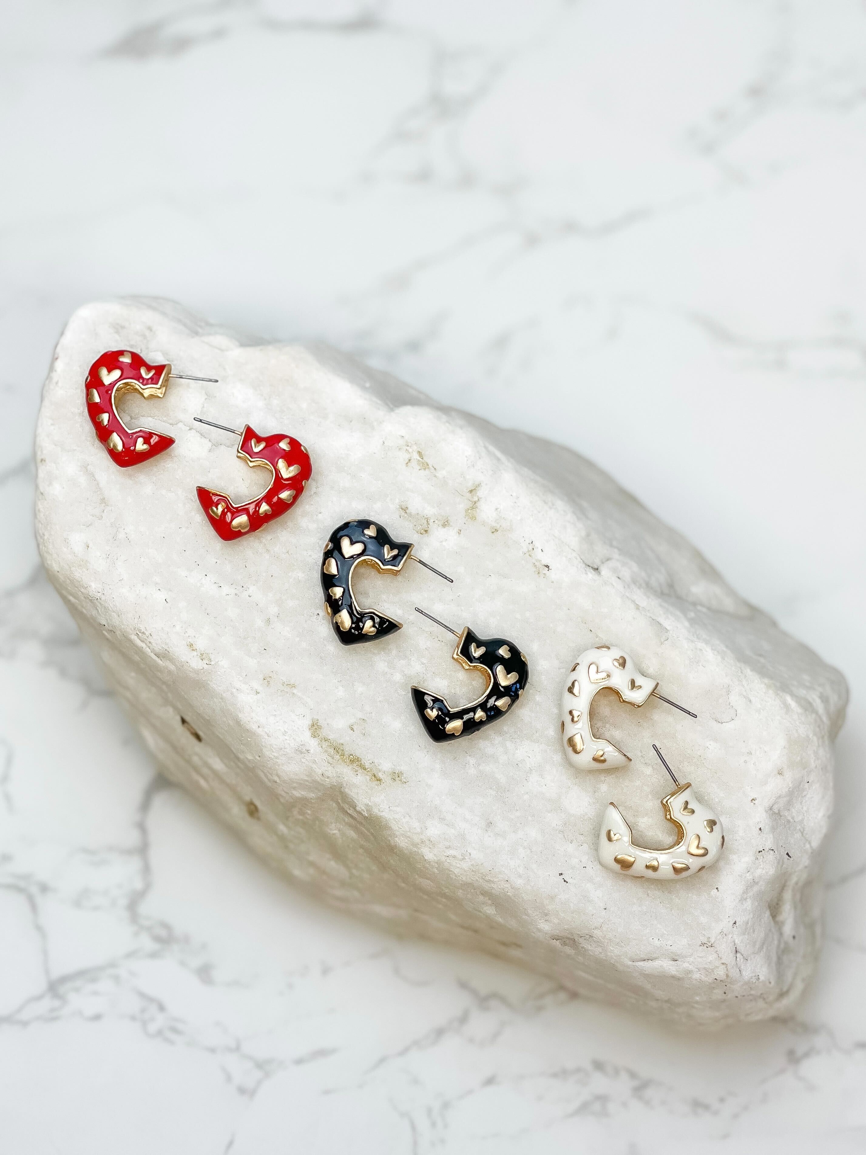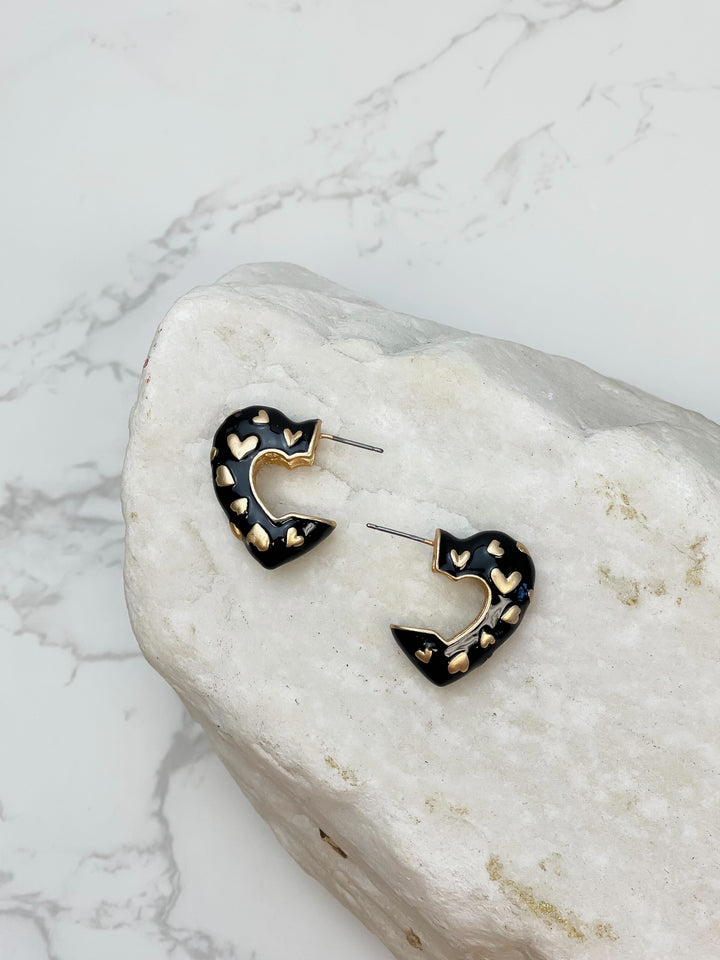 Enamel Heart Gold Mini Hoop Earrings - Jet