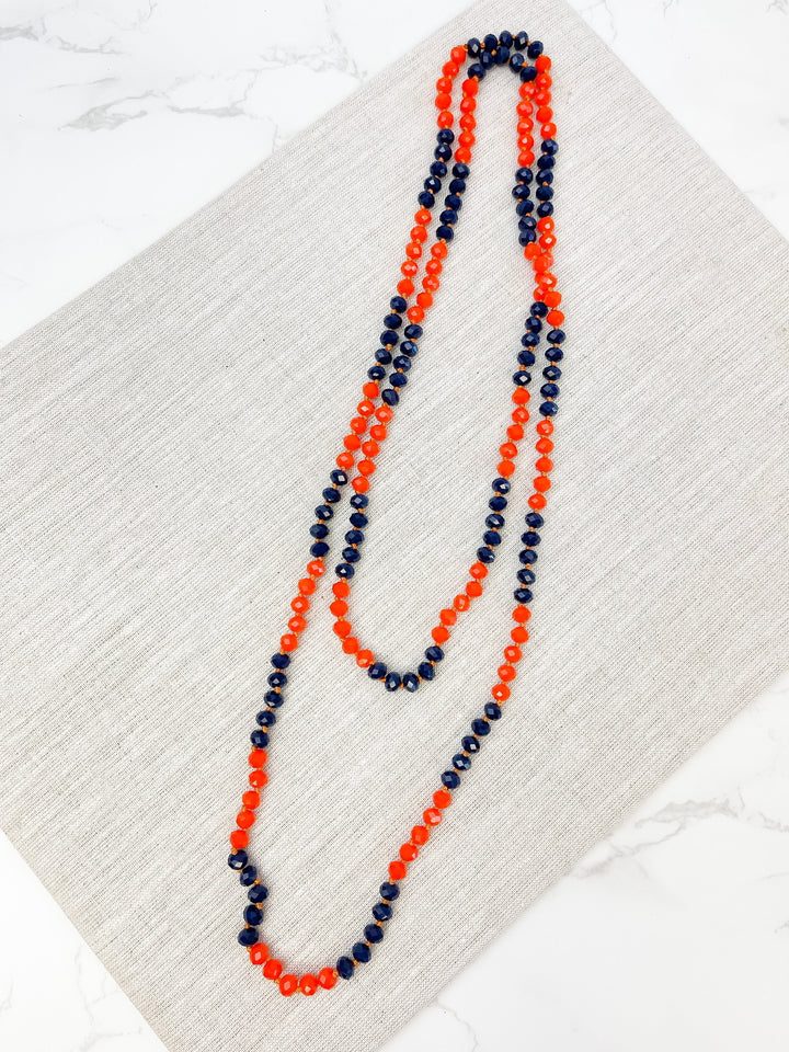 Endless Beaded Long Necklace - Orange & Navy Blue