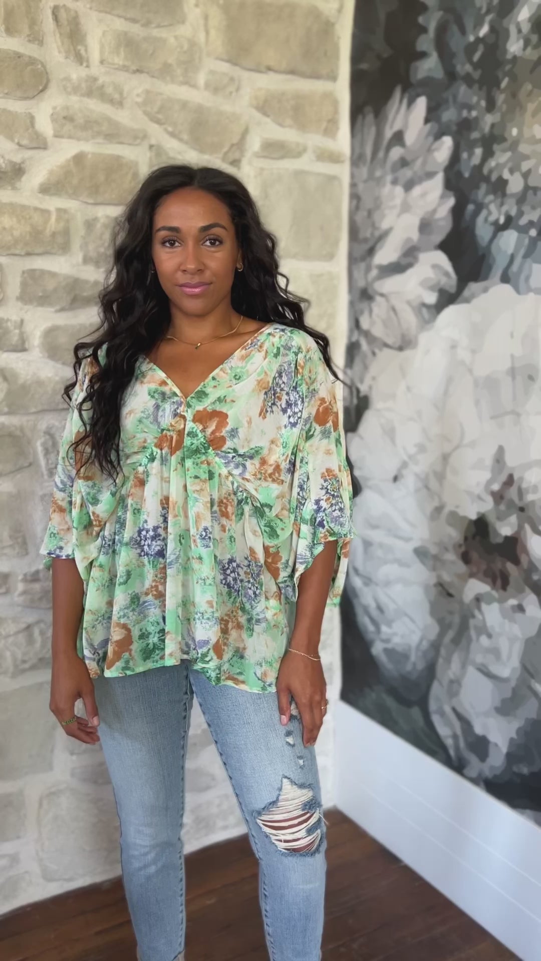 Look playful and beautiful in the Fabled in Floral Draped Peplum Top. This sheer floral chiffon top features a flirty peplum hem, oversized dolman sleeves, and a flattering v-neckline, for a look that is sure to turn heads. Add a touch of elegance to any outfit with this gorgeous top!