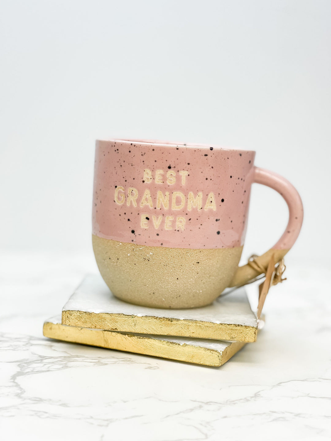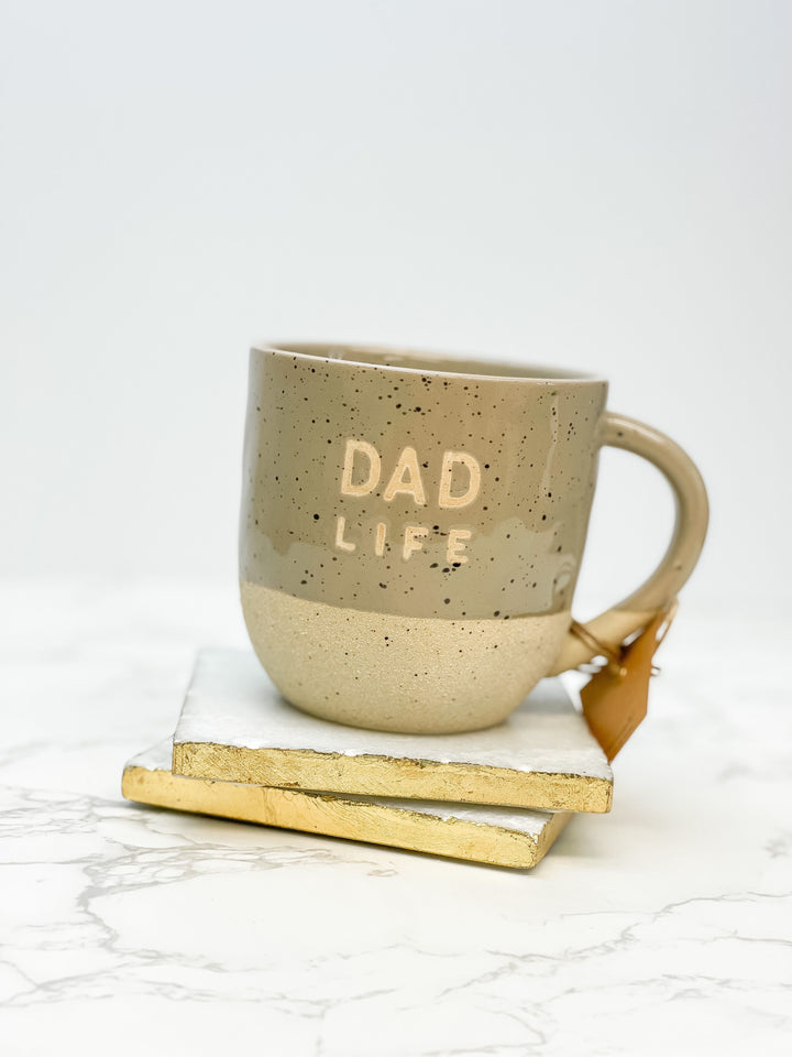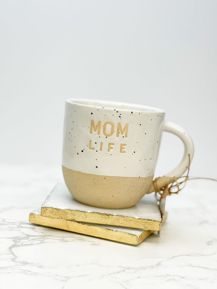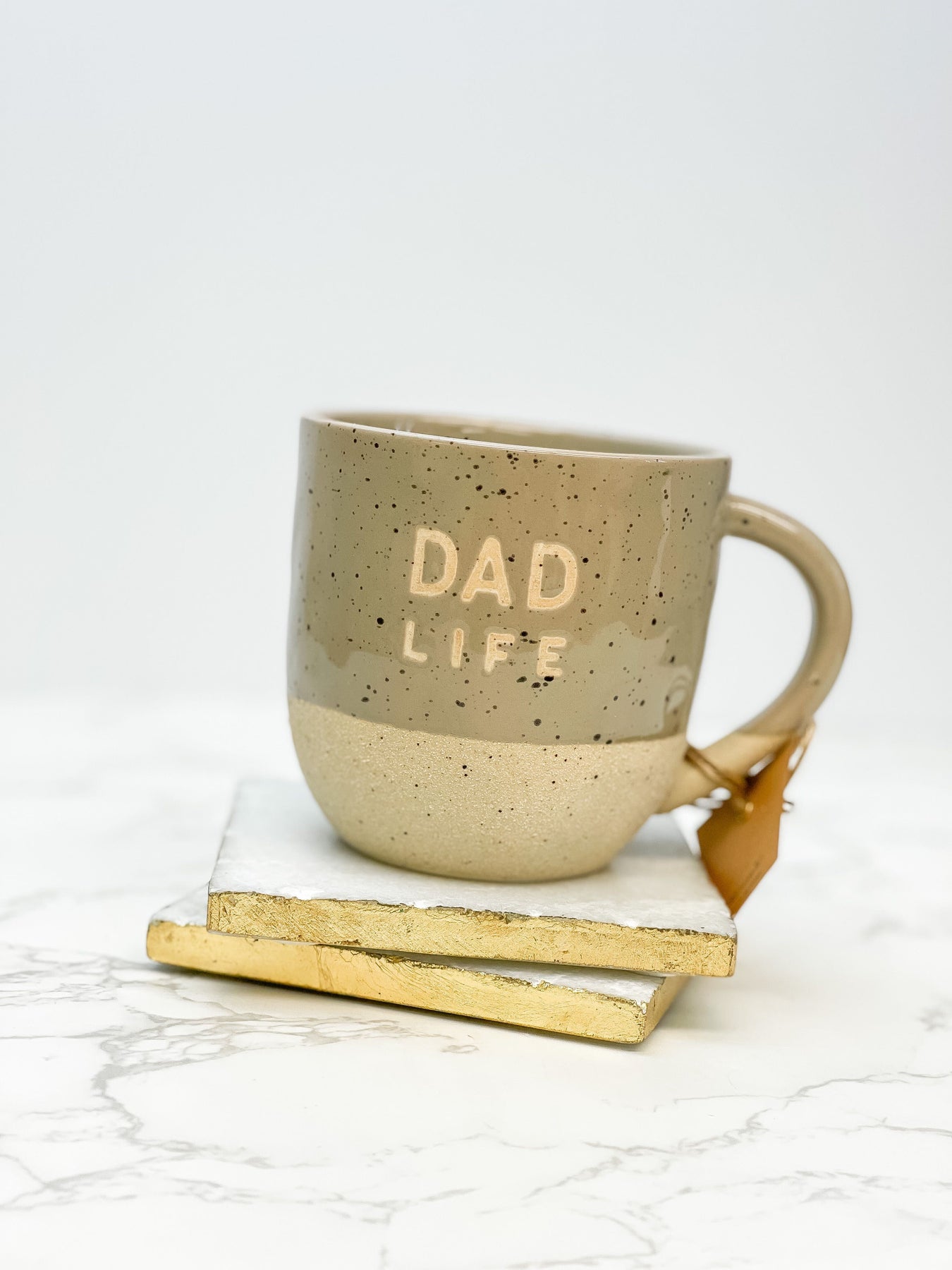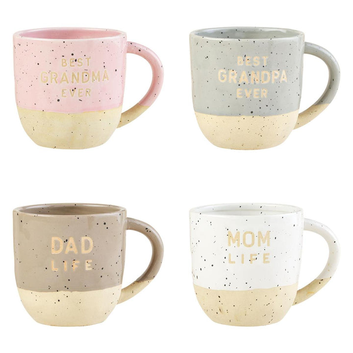 Glazed and exposed 8 oz stoneware mug with speckle and textural detail.