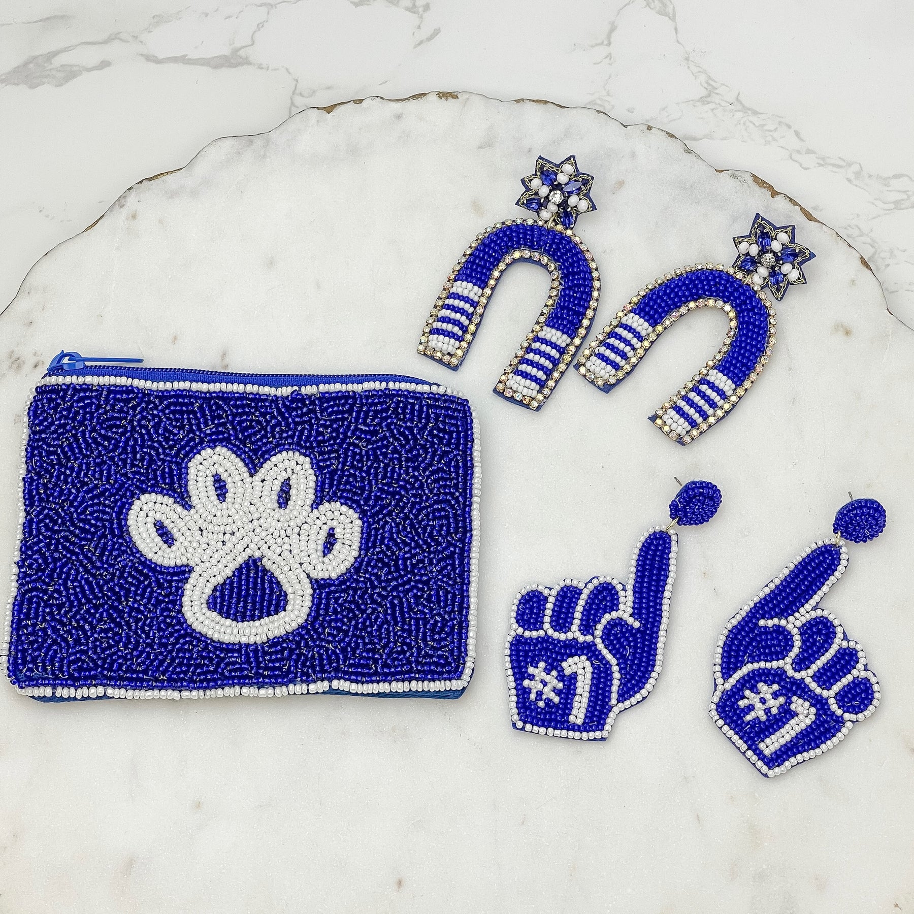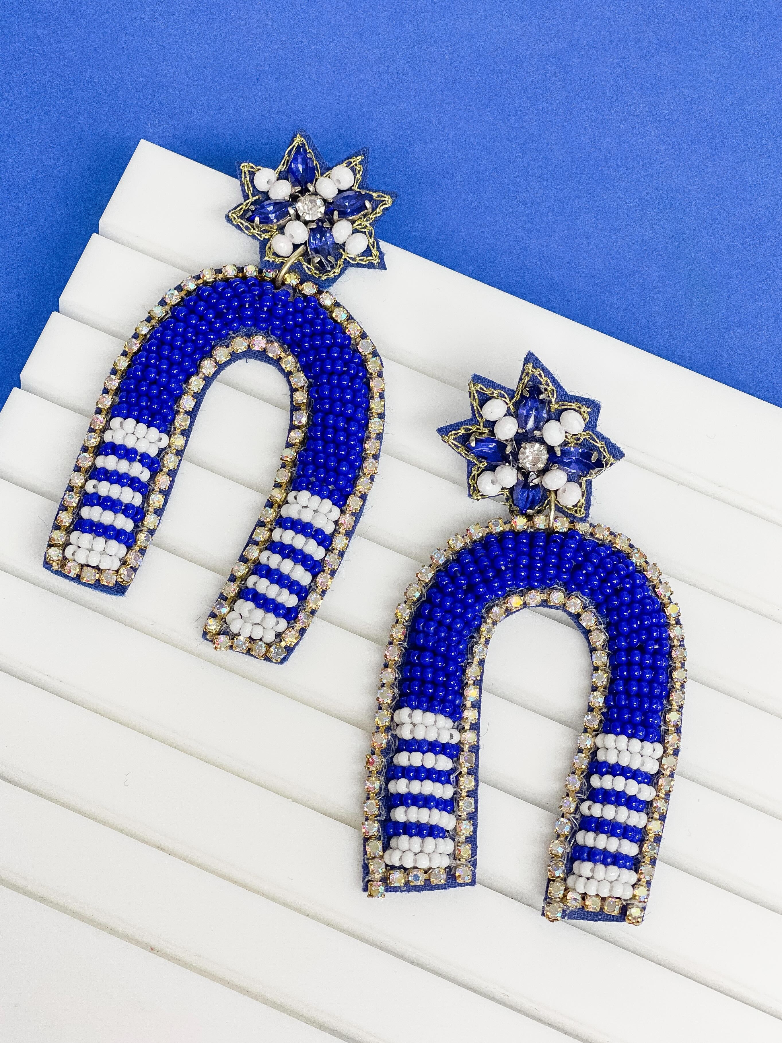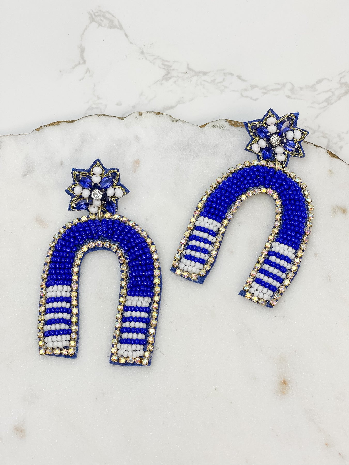 Game Day Beaded Arch Dangle Earrings - Blue & White