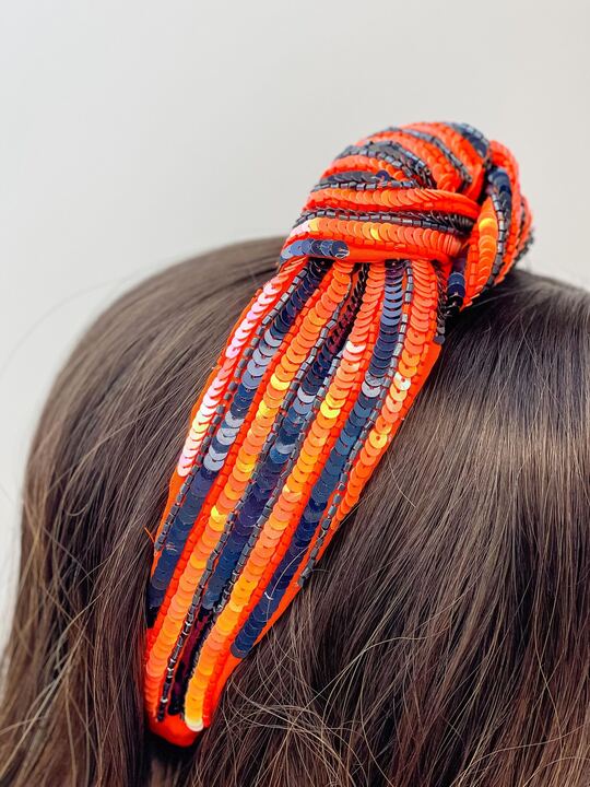 Game Day Sequin Headbands - Navy Blue & Orange