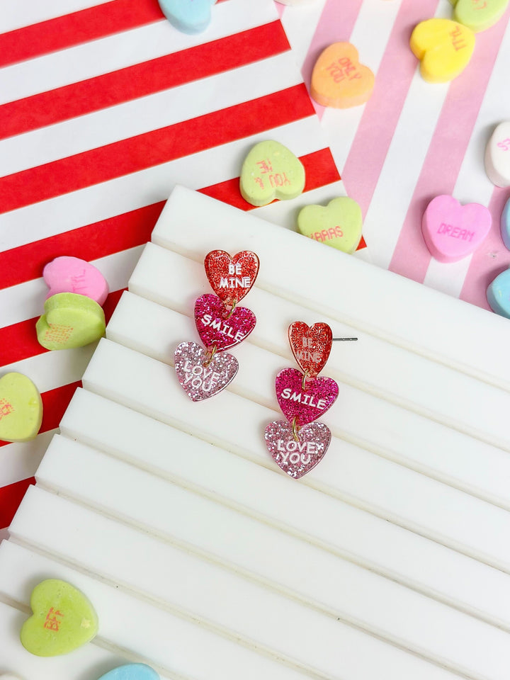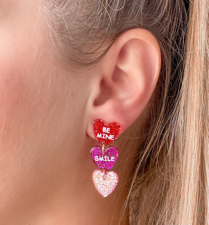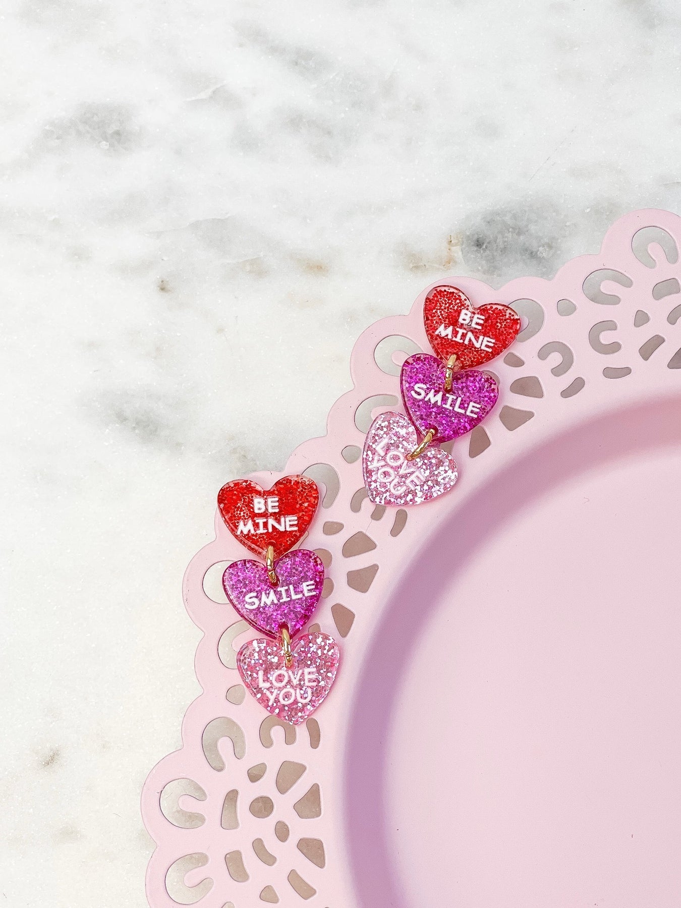 Show off your love with Glitter Conversation Heart Dangle Earrings.