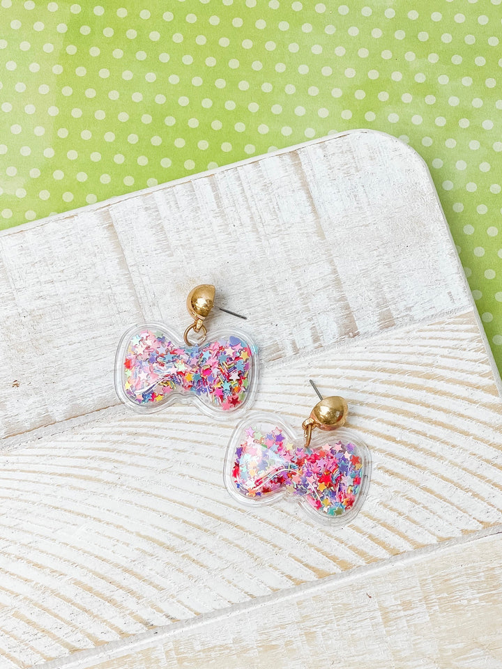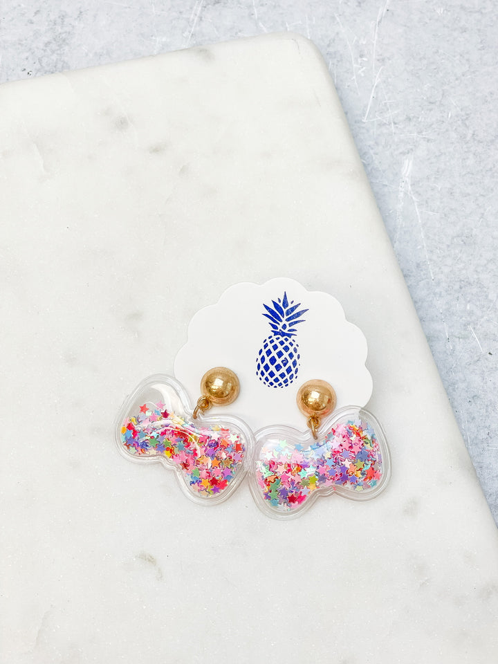 These lightweight earrings feature a beautiful star confetti dangle design and are sure to make a statement!