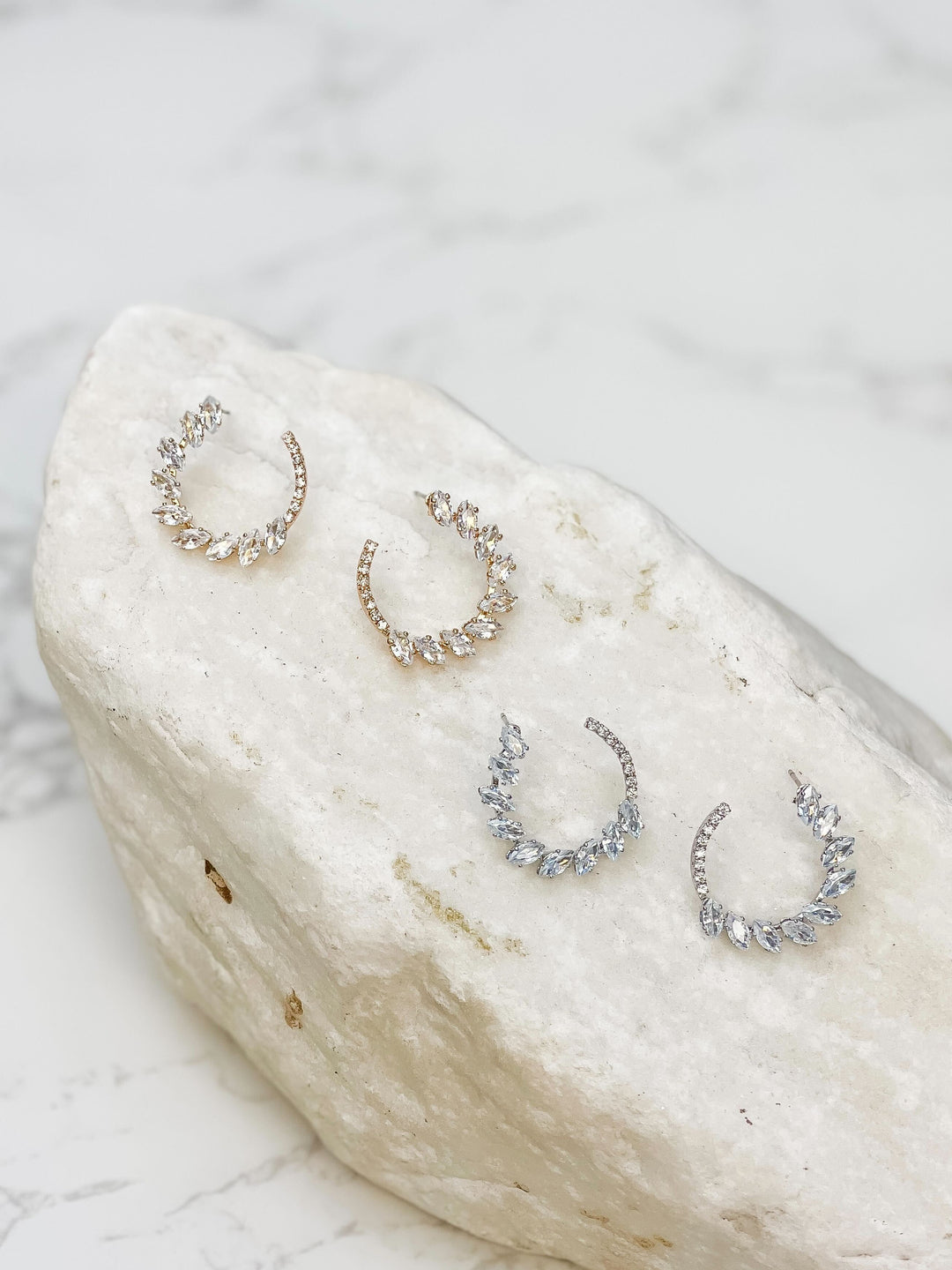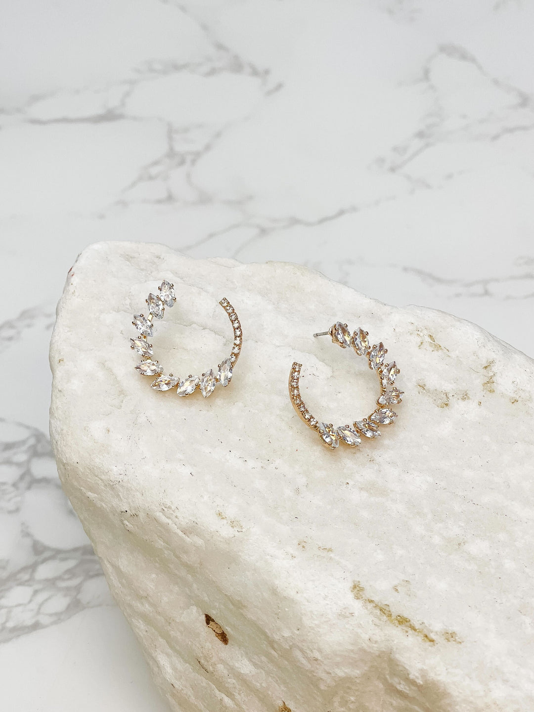 Glitzy Cubic Zirconia Hoop Earrings - Gold