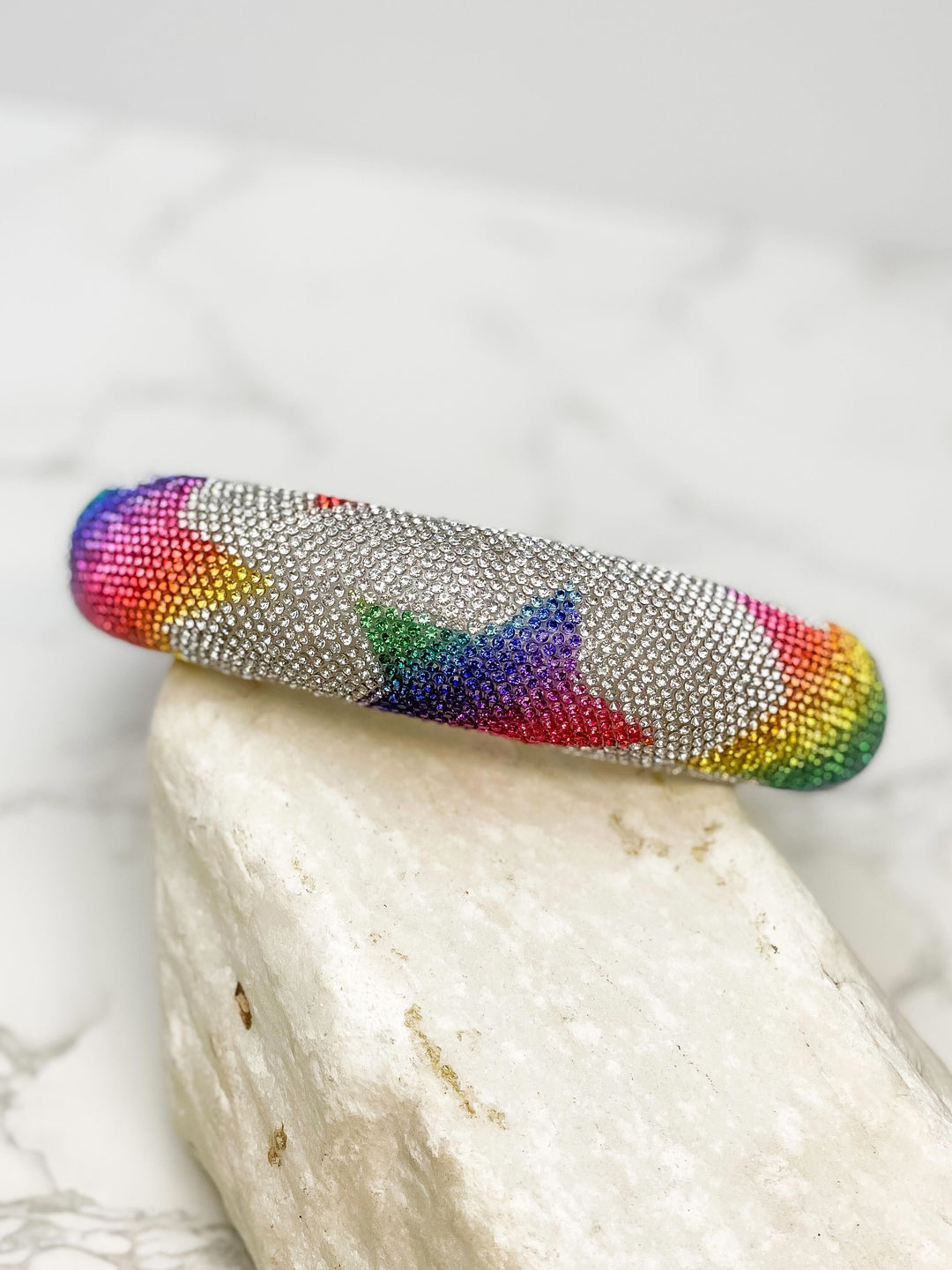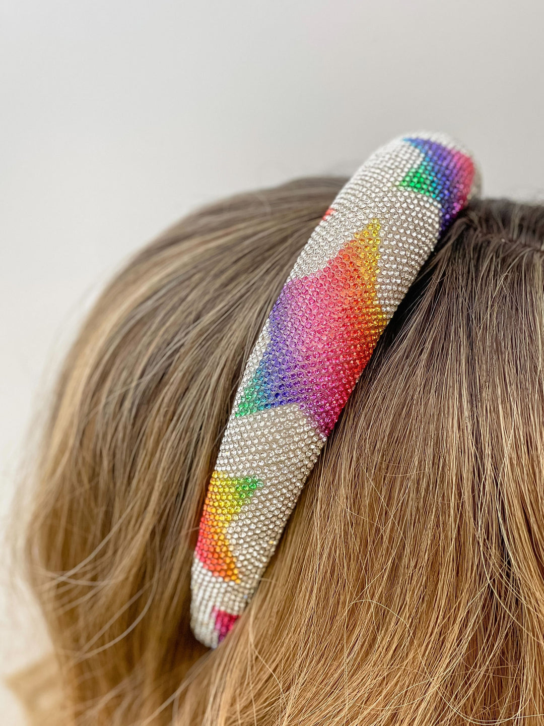 Glitzy Rhinestone Padded Headband - Rainbow Stars