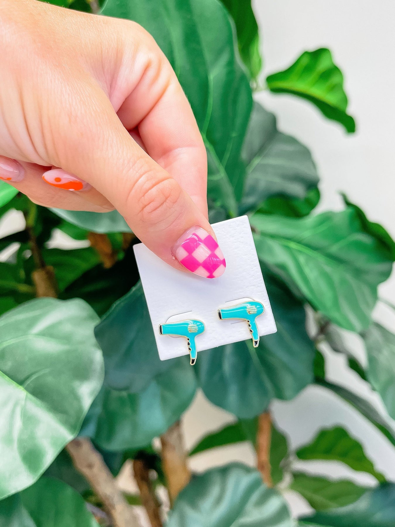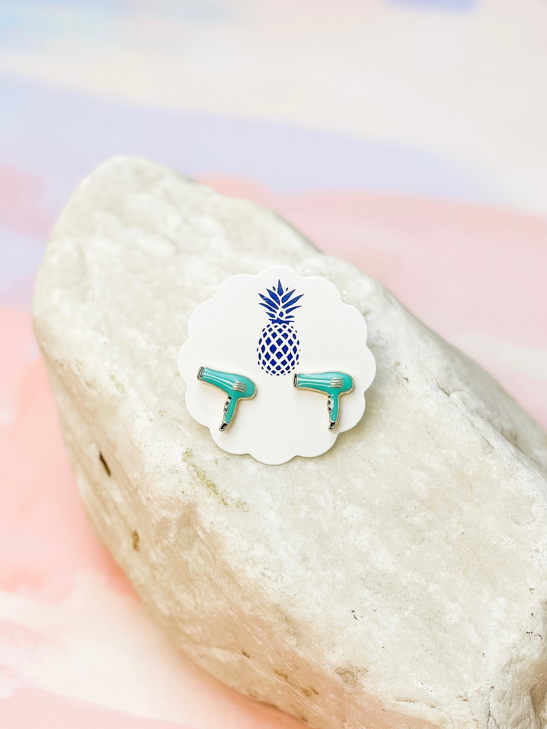 Hair Blow Dryer Signature Enamel Stud Earrings - Mint
