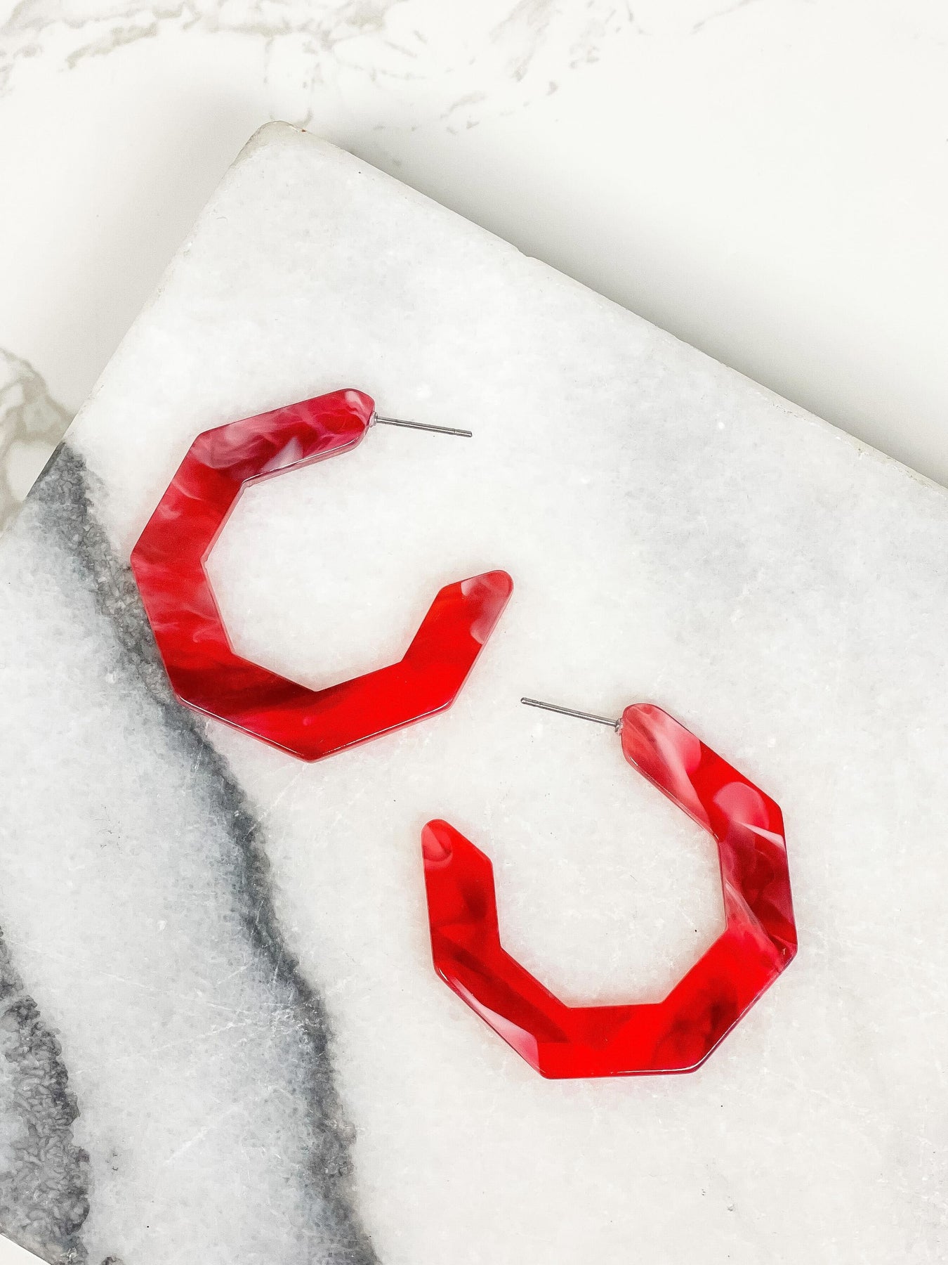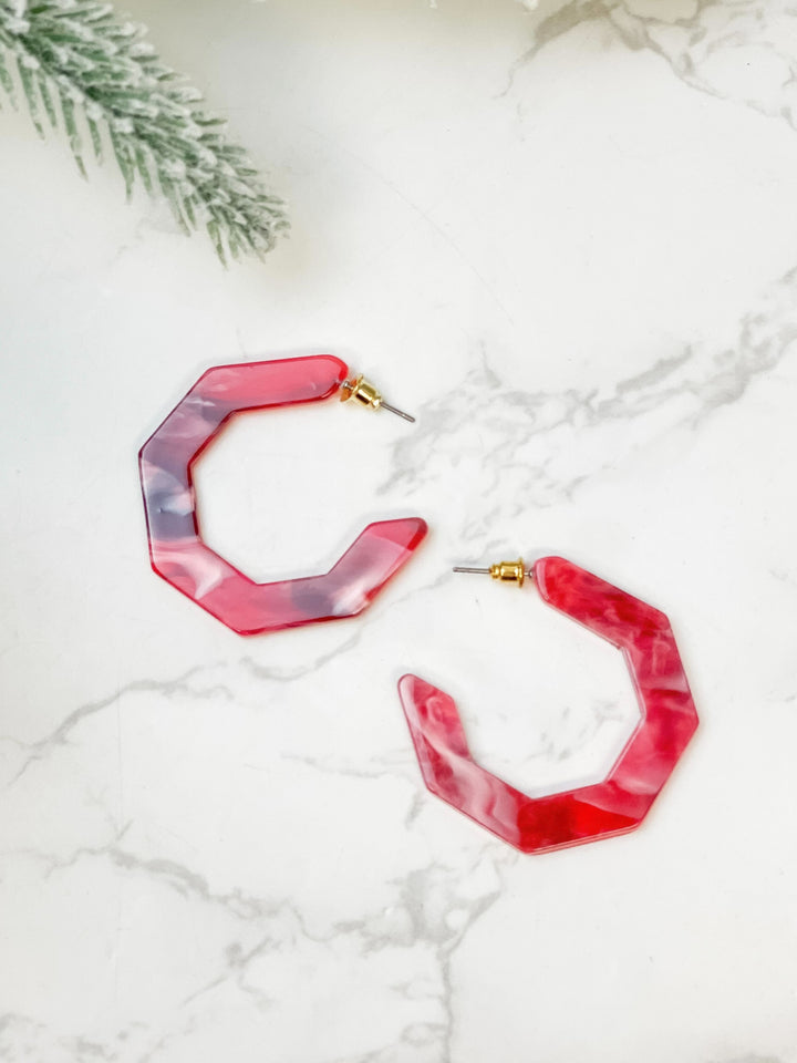 Marbled Geometric Hoop Earrings - Red