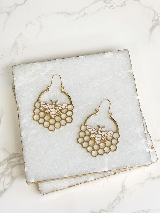 Honeycomb Metal Dangle Earrings - Gold