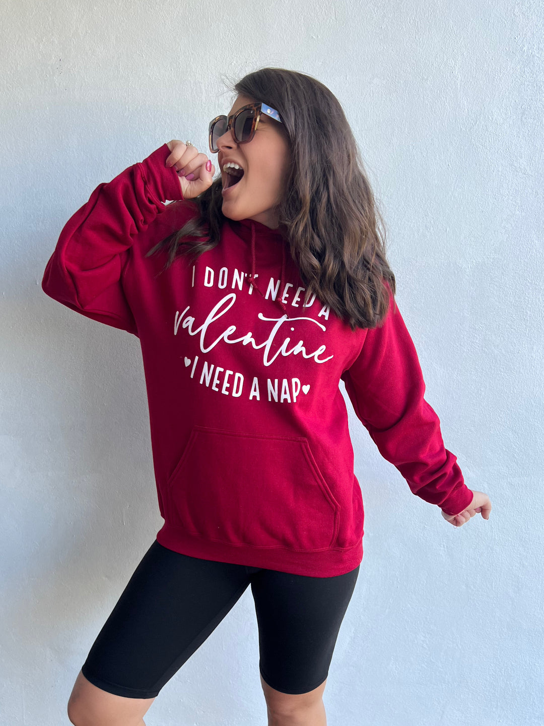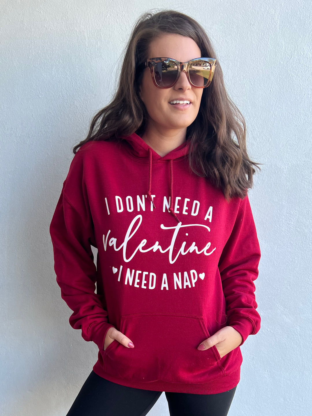 We already know our plans on Valentine's Day, and it most definitely involves the I Don't Need a Valentine Hoodie & a cozy blanket! This cute hoodie features a thick jersey cotton that shapes a hooded neckline with functional drawstrings, long sleeves and a loose fit bodice with a kangaroo style pocket.